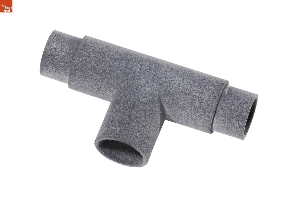 Like other American automakers, Ford Motor Company devoted employees and facilities to producing specialized equipment to fight COVID-19. Early in the pandemic, many infected patients developed serious respiratory complications and depended on ventilators -- then in short supply -- to breathe. This is a prototype for a connector that would allow a single ventilator to assist multiple people.