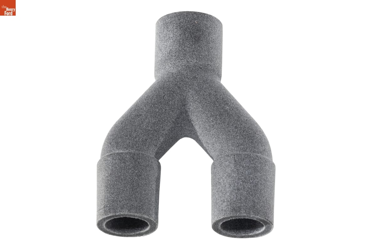 Like other American automakers, Ford Motor Company devoted employees and facilities to producing specialized equipment to fight COVID-19. Early in the pandemic, many infected patients developed serious respiratory complications and depended on ventilators -- then in short supply -- to breathe. This is a prototype for a connector that would allow a single ventilator to assist multiple people.