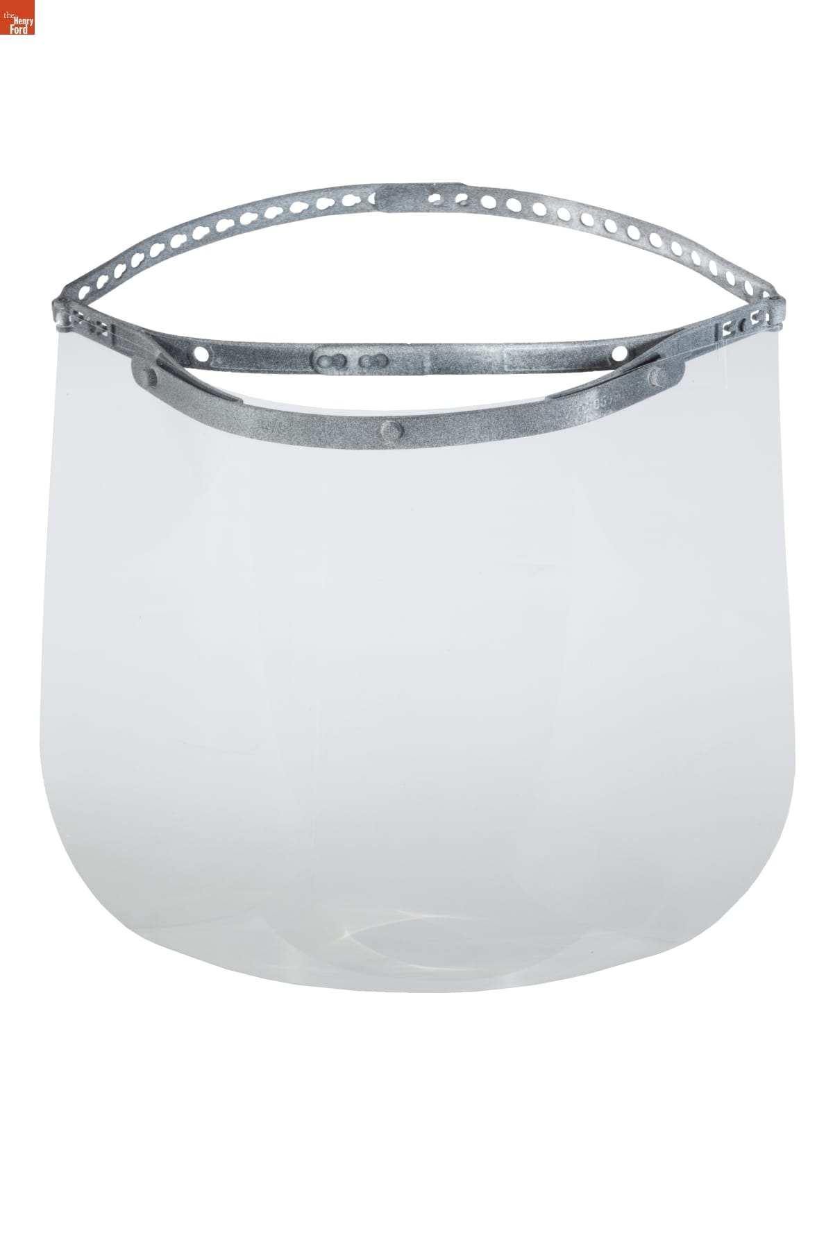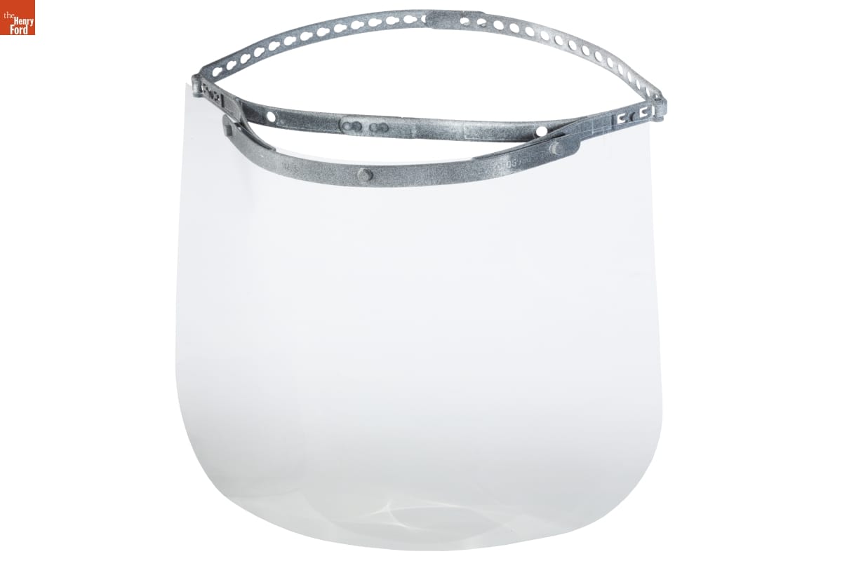 Like other American automakers, Ford Motor Company devoted employees and facilities to producing specialized equipment to fight the COVID-19 pandemic. This is a prototype face shield, to reduce the risk of virus exposure through respiratory droplets. Unlike face masks, which impeded the spread of droplets from the wearer, face shields protected against the spread of droplets to the wearer.