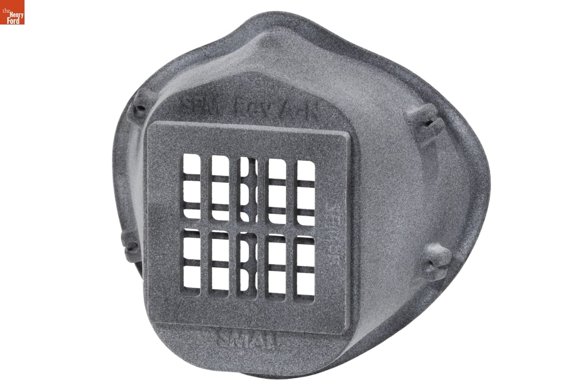 Like other American automakers, Ford Motor Company devoted employees and facilities to producing specialized equipment to fight the COVID-19 pandemic. Face masks reduced the risk of spreading the virus through respiratory droplets. This is a prototype part for a particulate respirator -- a type of mask that protected the wearer from exhaling and inhaling droplets.