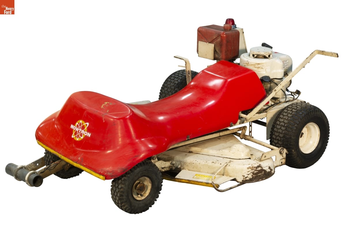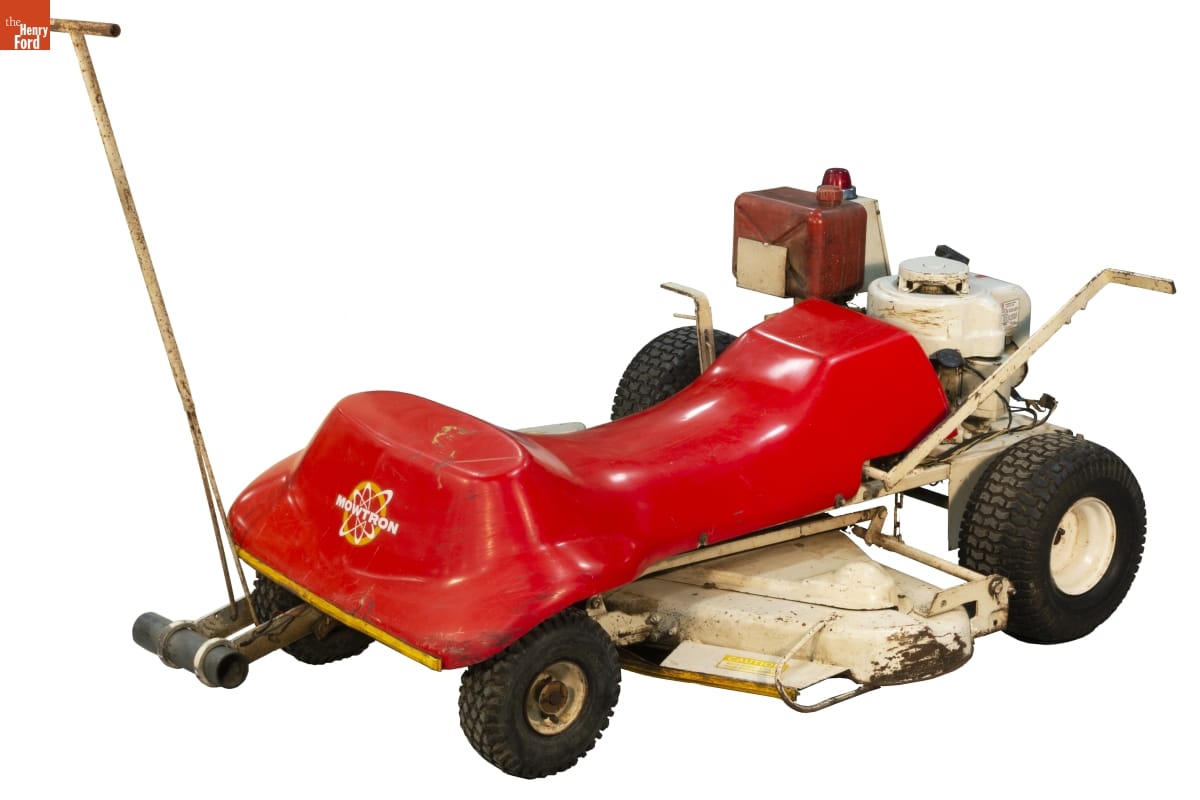 "Mowtron...Mows while you Doze!" The American Marketing and Sales Company stressed computerized operation to encourage adoption of its autonomous lawn mower. The machine followed signals emitted by a transistorized guidance system, eliminating the need for homeowners to dedicate valuable time to lawn care. Built-in features like sensitized bumpers eased safety concerns, though sales fell far short of the company's dreams.