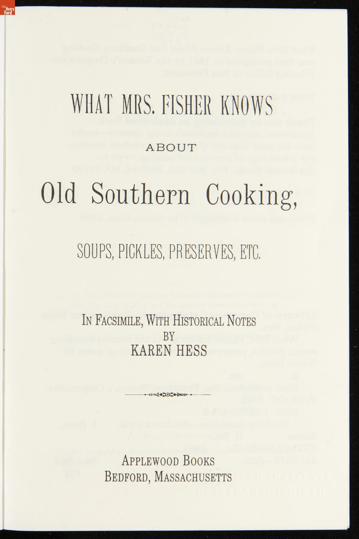 What Mrs. Fisher Knows about Old Southern Cooking, 1995