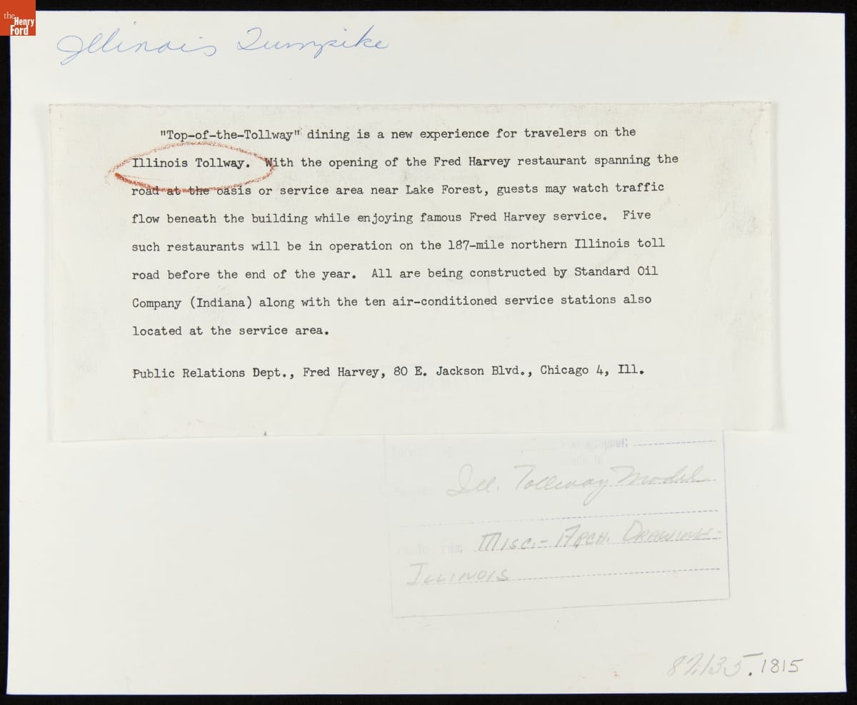 "Top-of-the-Tollway" Dining at the Fred Harvey Restaurant Spanning the Illinois Tollway, circa 1959