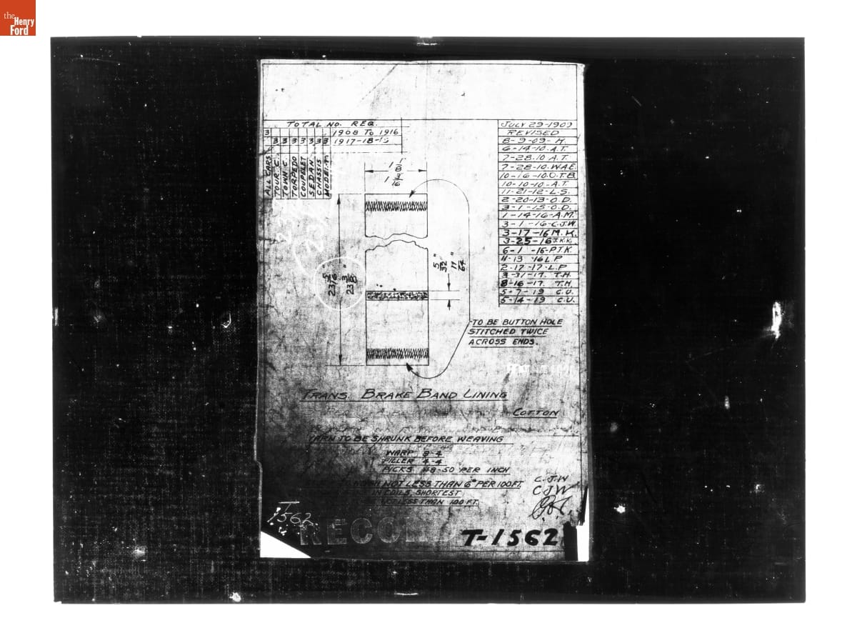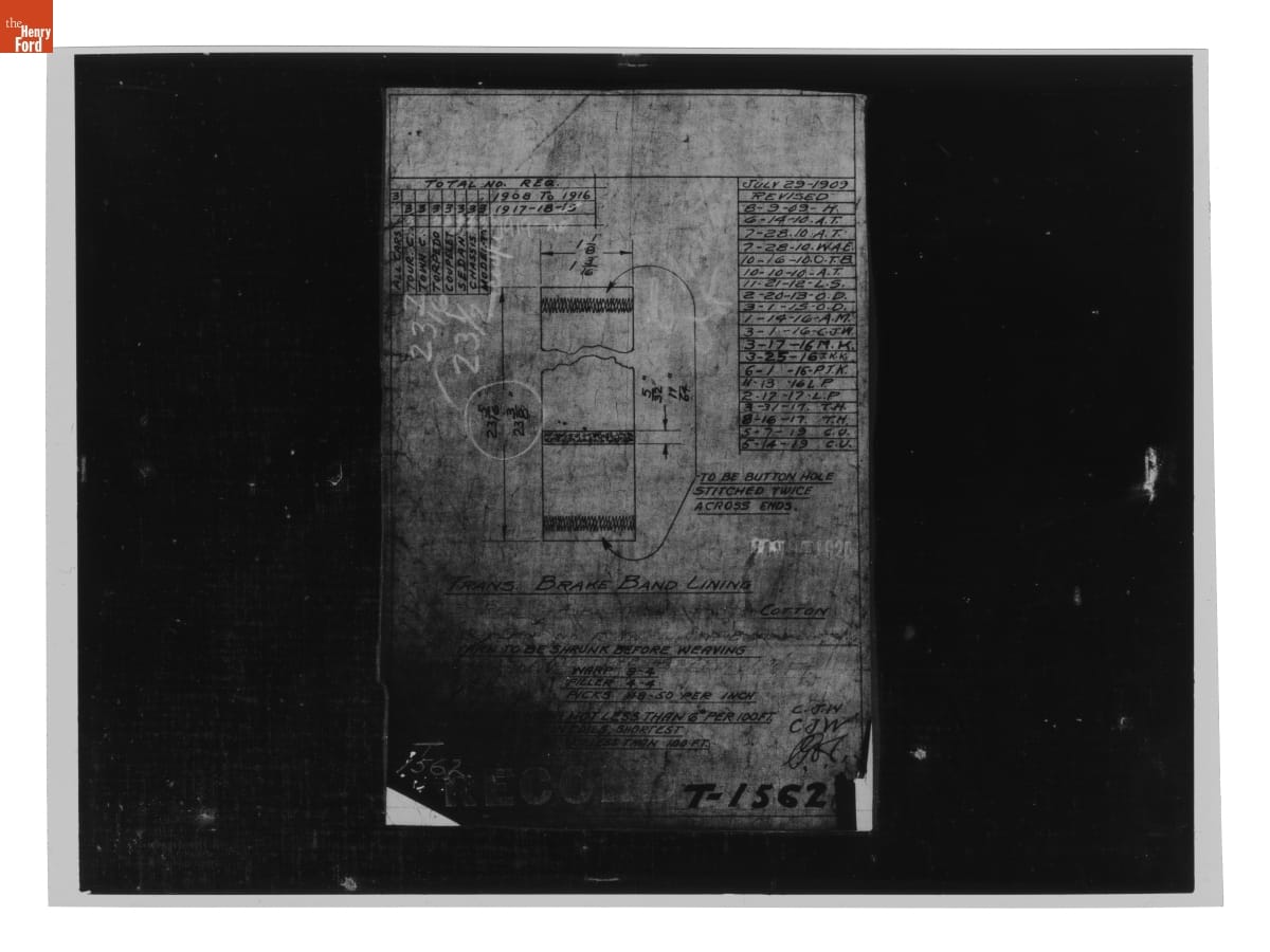Drawing, "Trans Brake Band Lining," Ford Model T, May 14, 1919
