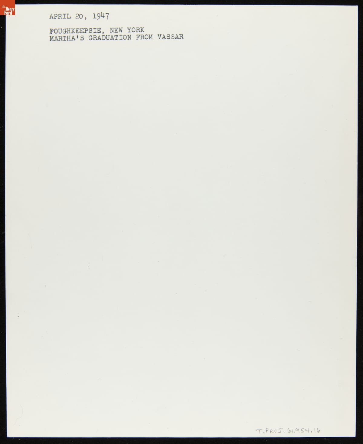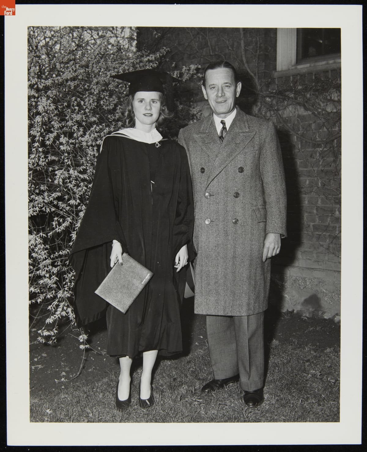 Martha Firestone with Her Father, Harvey Firestone, Jr., at Martha's Graduation from Vassar, April 20, 1947
