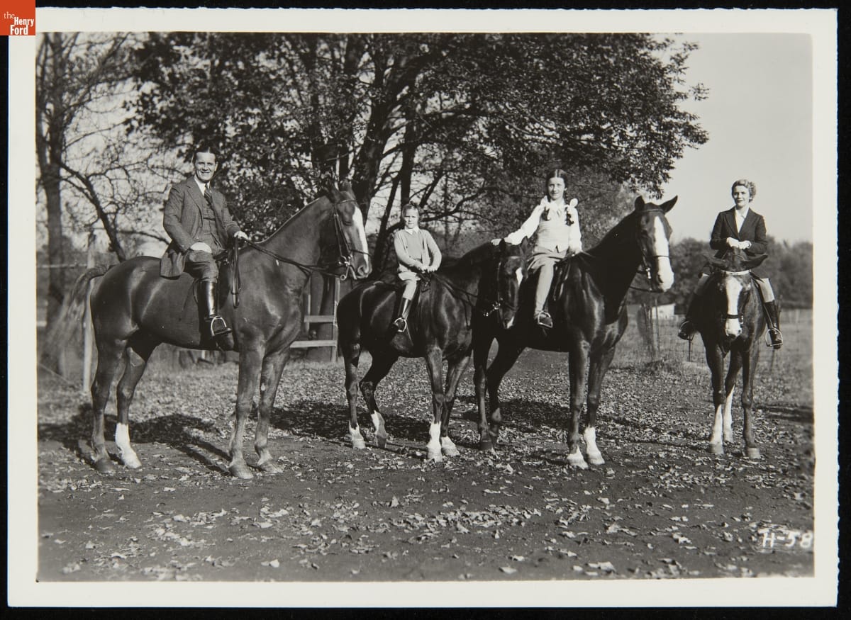 Harvey Firestone, Jr. and Elizabeth Parke Firestone with Their Daughters, Riding Horses, circa 1935