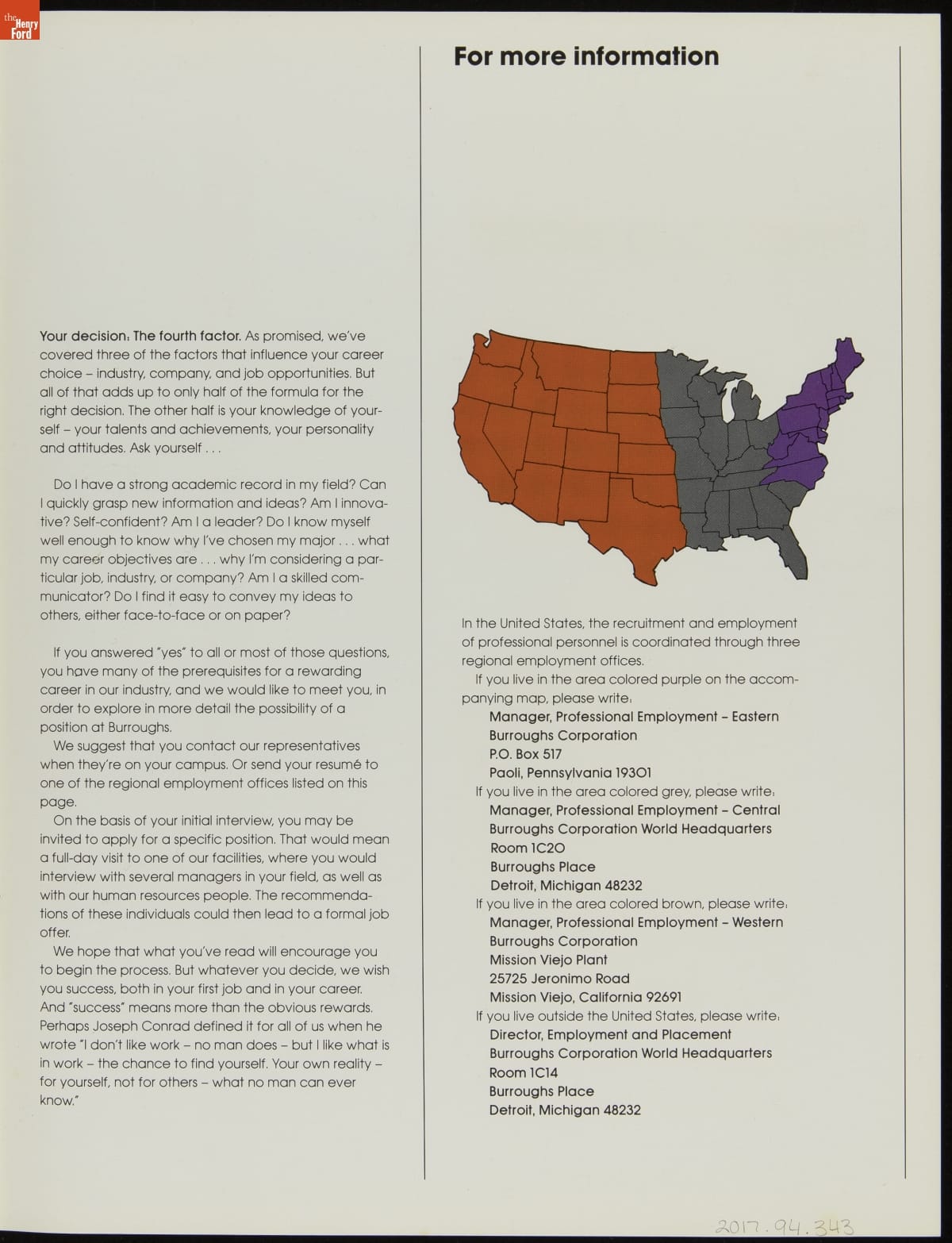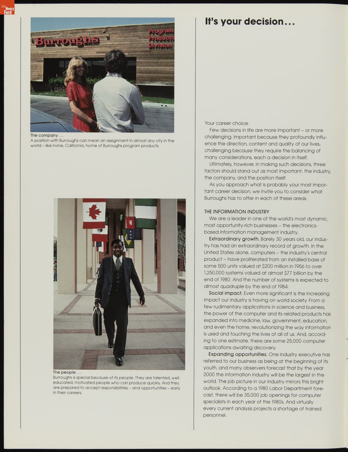 Publication, "A Career with Burroughs … More Than a Job," circa 1979