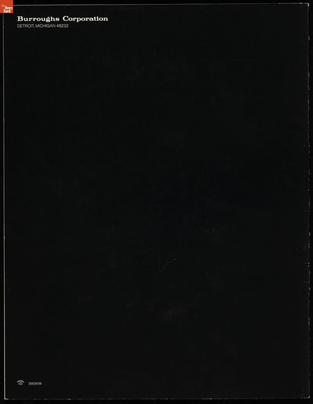 Printed by the Burroughs Corporation in Detroit, Michigan.