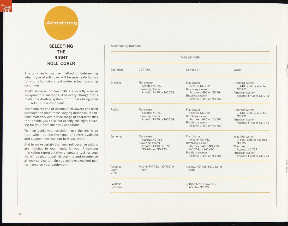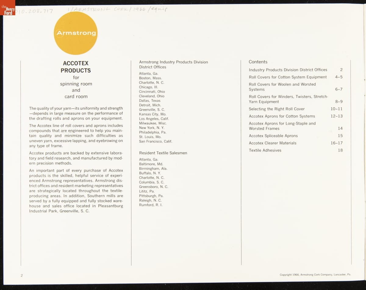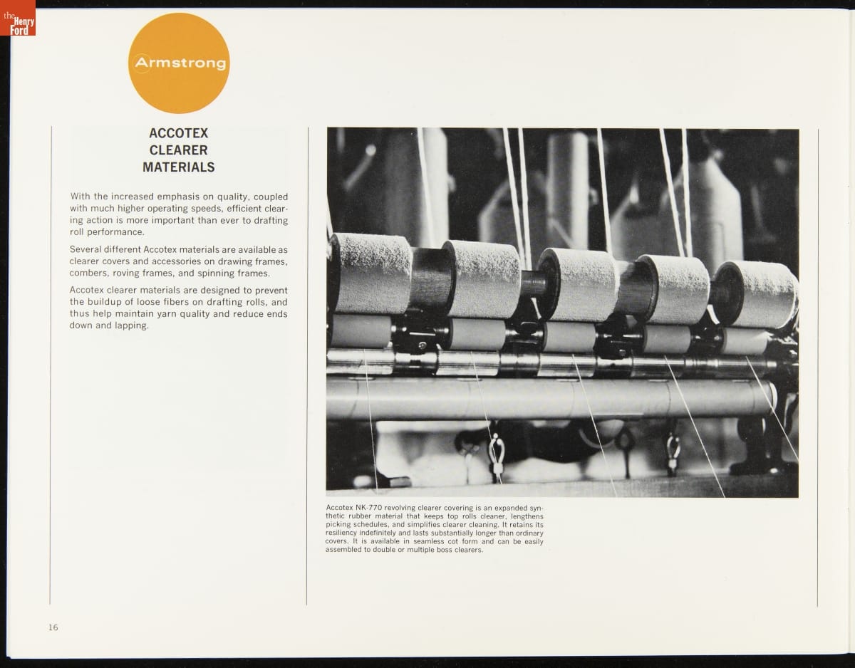 Armstrong Cork Company Catalog, "Accotex Products for Spinning Room and Card Room," 1966