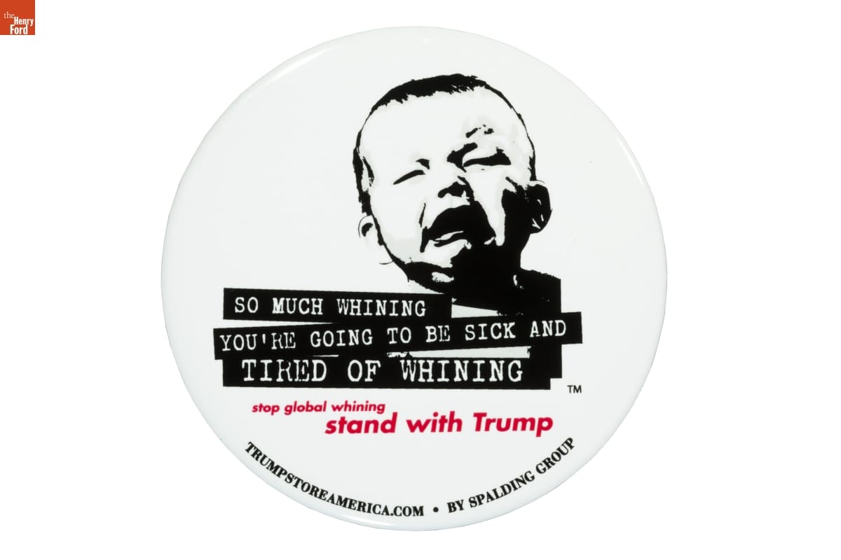 "So Much Whining You're Going to Be Sick and Tired of Whining Stop Global Whining, Stand with Trump" Political Button, 2020
