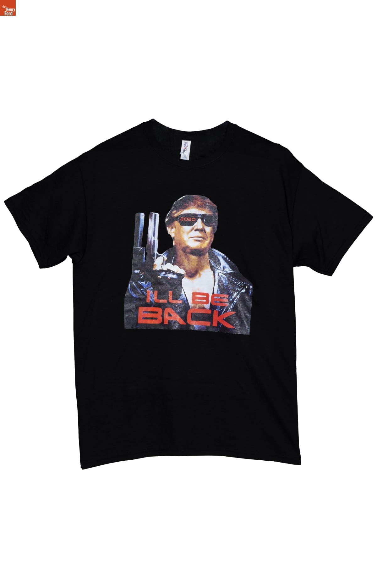 Many supporters of President Trump believe that he was vital in protecting the constitutional right to own and carry firearms. This shirt, a combination of altering the presidential campaign slogan of "Make America Great Again," and the unlicensed usage of the phrase "I'll Be Back" from the 1984 science-fiction film, "The Terminator," embodies the ideals of machoism and gun ownership.