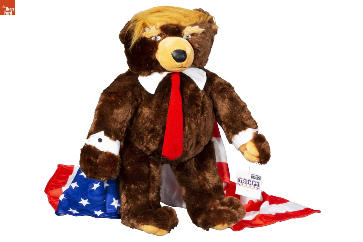 Just as the teddy bear was inspired by a tale about President Theodore Roosevelt, Trumpy Bear was designed to honor President Trump. Featuring his iconic hair, dressed in a suit, and with a secret compartment containing an American flag blanket, Trumpy Bear was for some an homage to a patriotic president, and for others an odd "as-seen-on-TV" novelty.