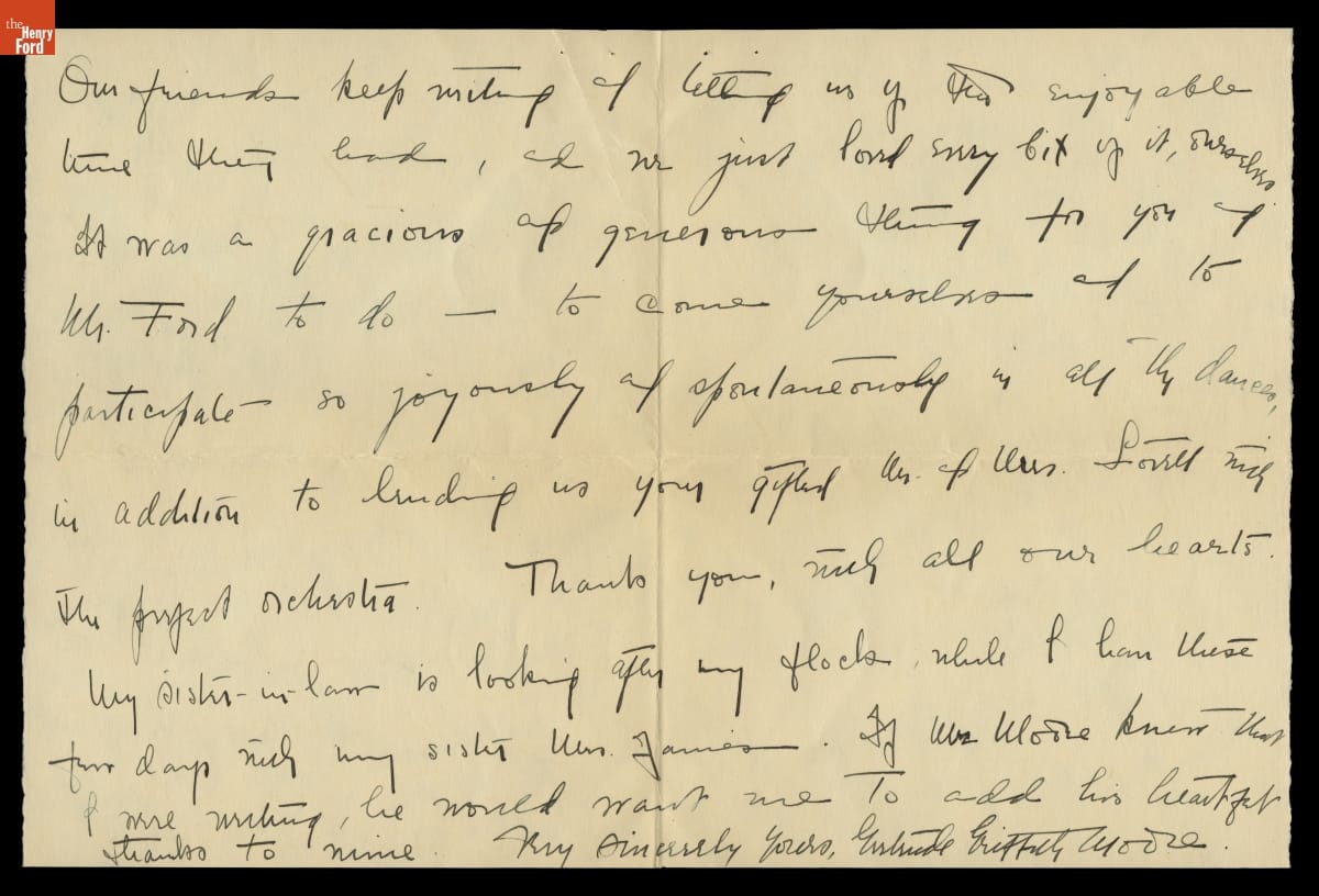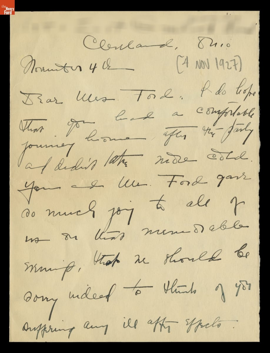 Letter from Gertrude Moore to Clara Ford, November 4, 1927