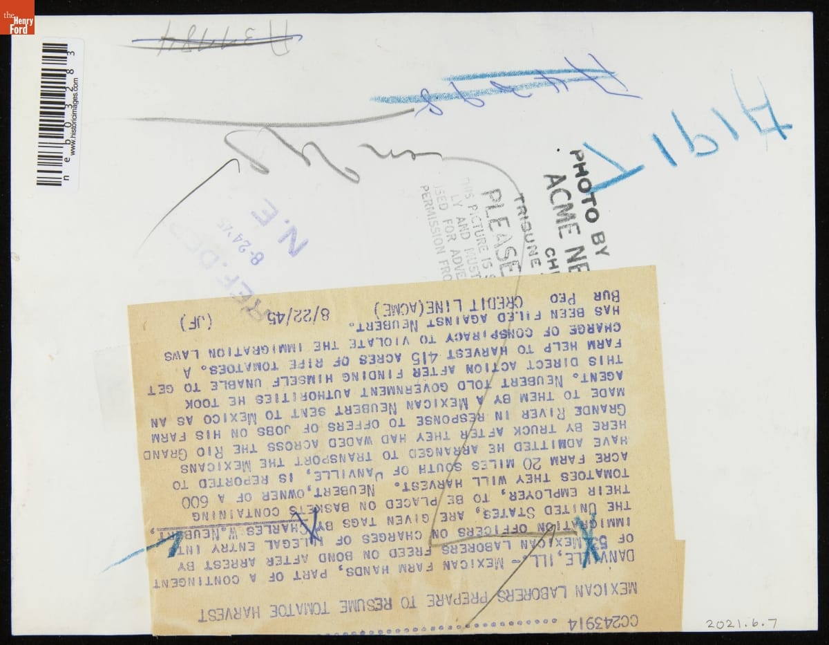 Mexican Farm Laborers Preparing to Resume Tomato Harvest, August 1945
