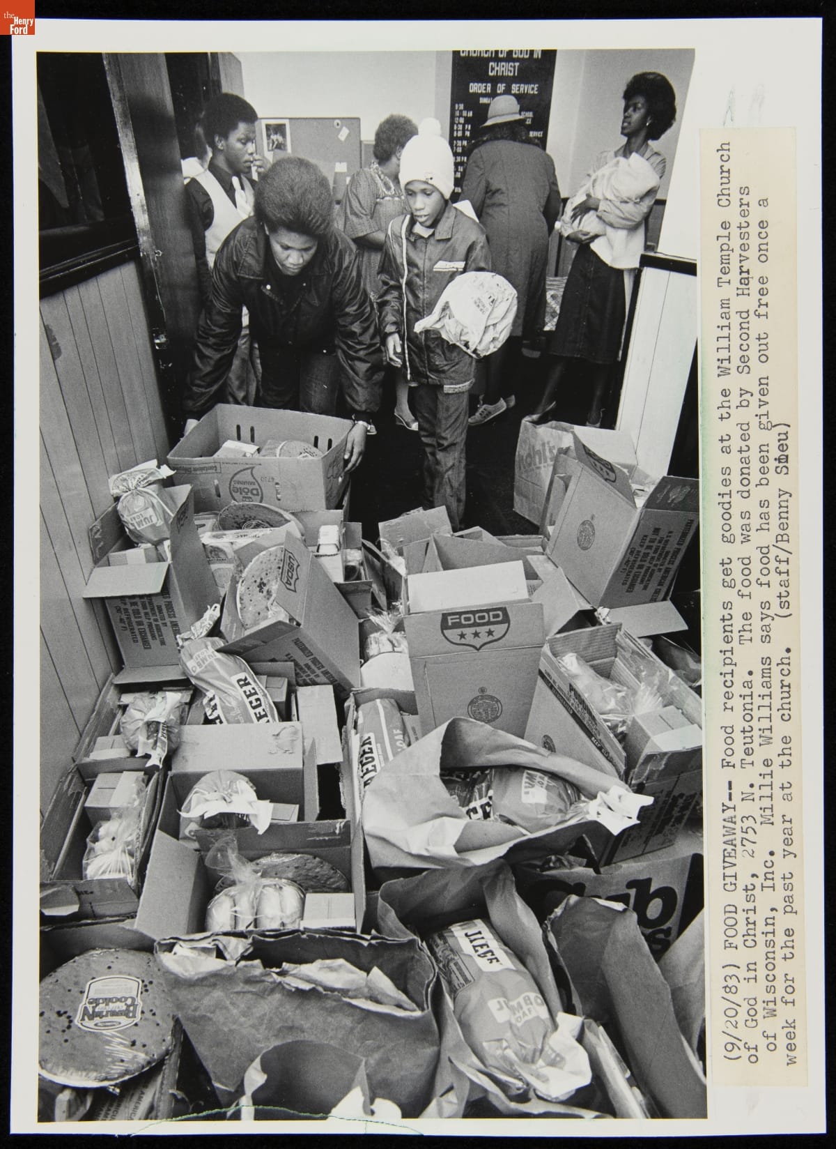 Donated Food Pantry at the William Temple Church of God in Christ, Milwaukee, Wisconsin, September 1983