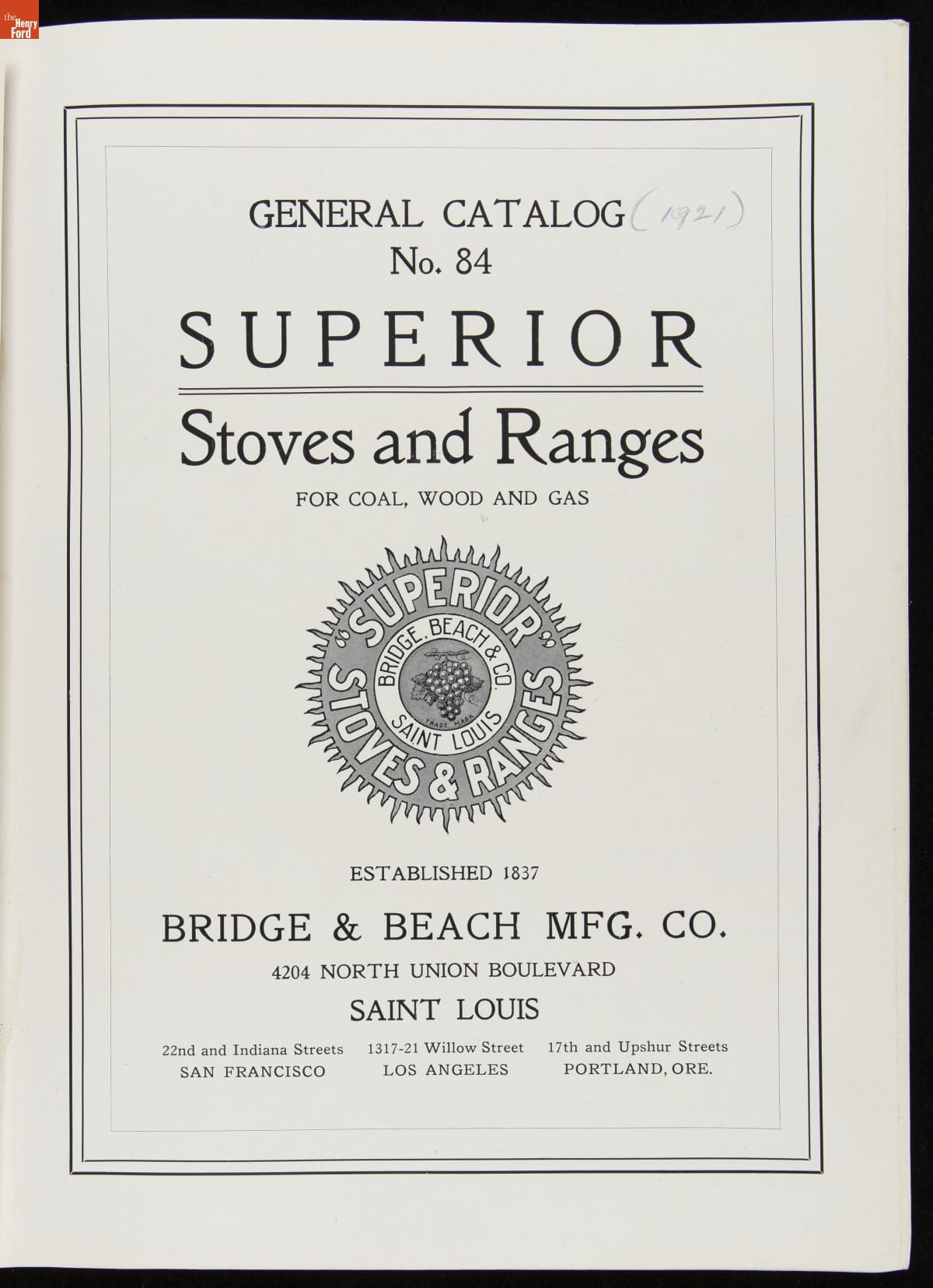 Bridge and Beach Manufacturing Company General Catalog No. 84, "Superior Stoves and Ranges for Coal, Wood, and Gas," circa 1921