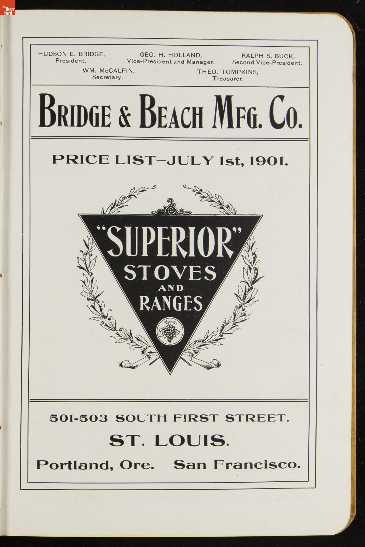 Bridge and Beach Manufacturing Company Catalog, "Price List - July 1st, 1901: Superior Stoves and Ranges," 1901