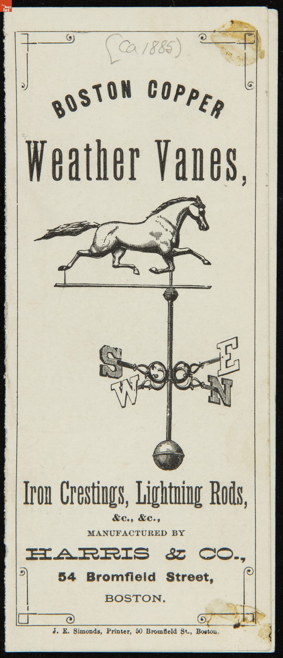 Harris & Co. Catalog, "Boston Copper Weathervanes, Iron Crestings, and Lightning Rods," circa 1885