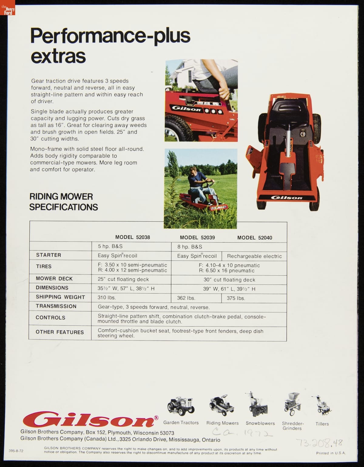 Gilson Brothers Company Catalog, "Gilson Riding Mowers," 1972