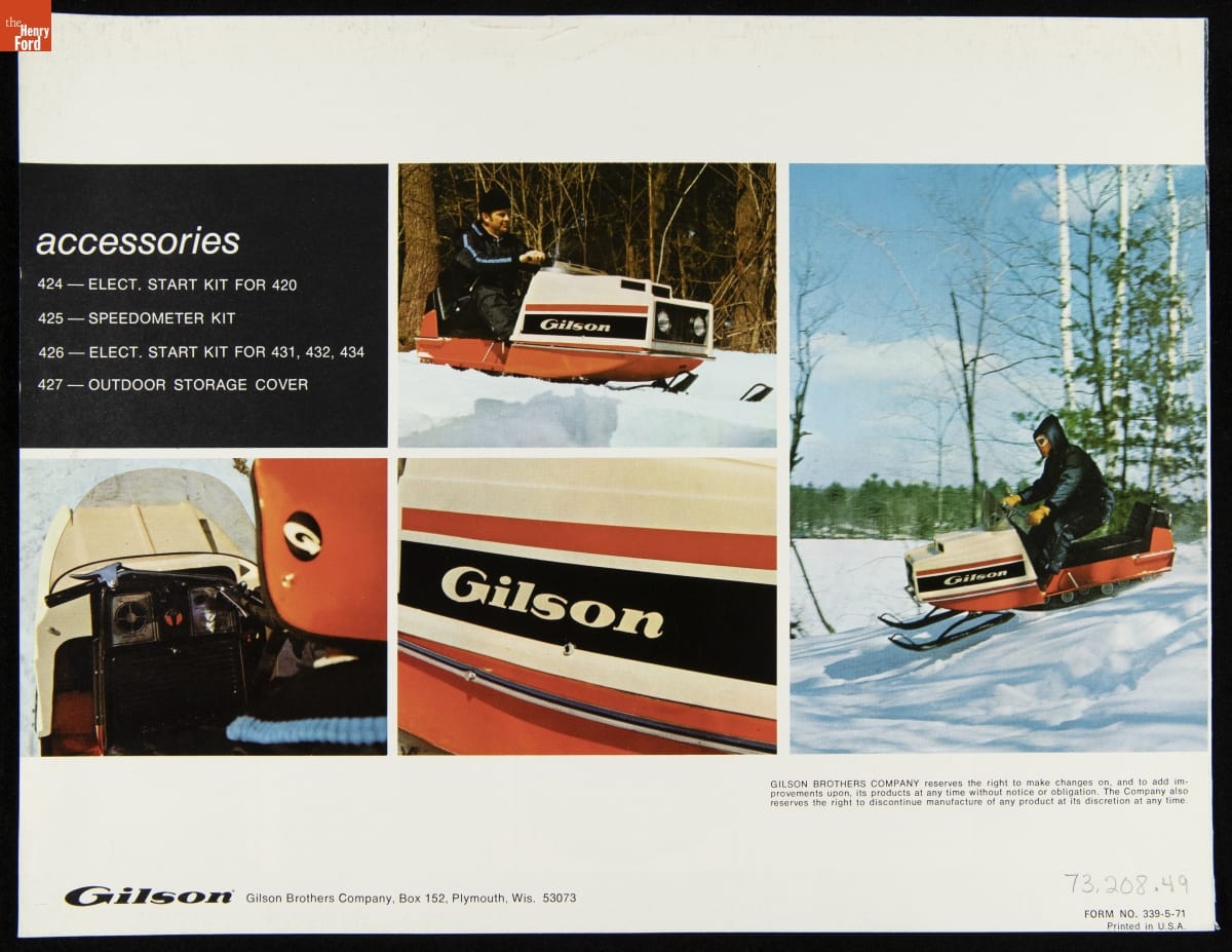 Gilson Brothers Company Catalog, "It's Great Going Gilson! Snowmobiles '72," 1972