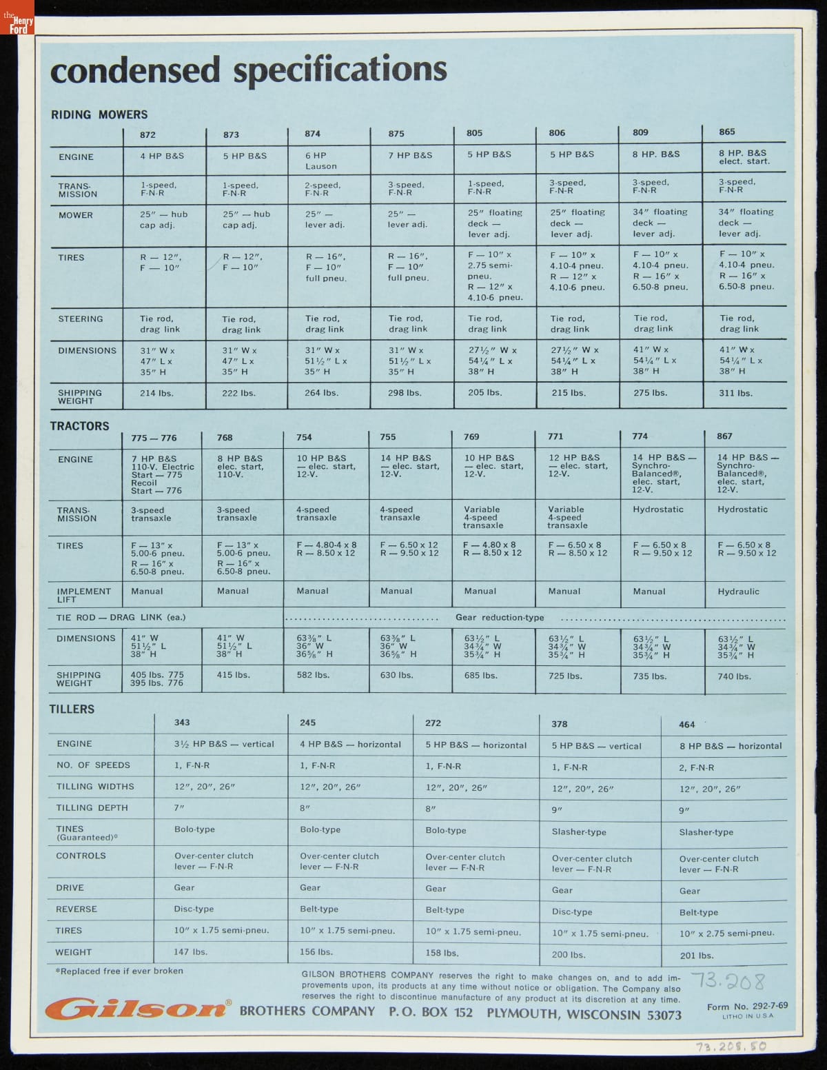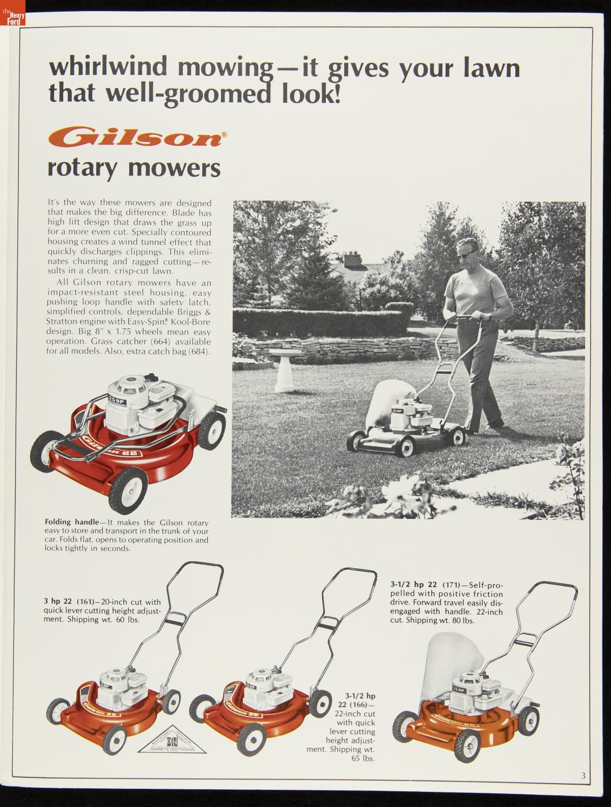 Gilson Brothers Company Catalog, "Gilson Outdoor Power Equipment: What a Way to Go," 1969