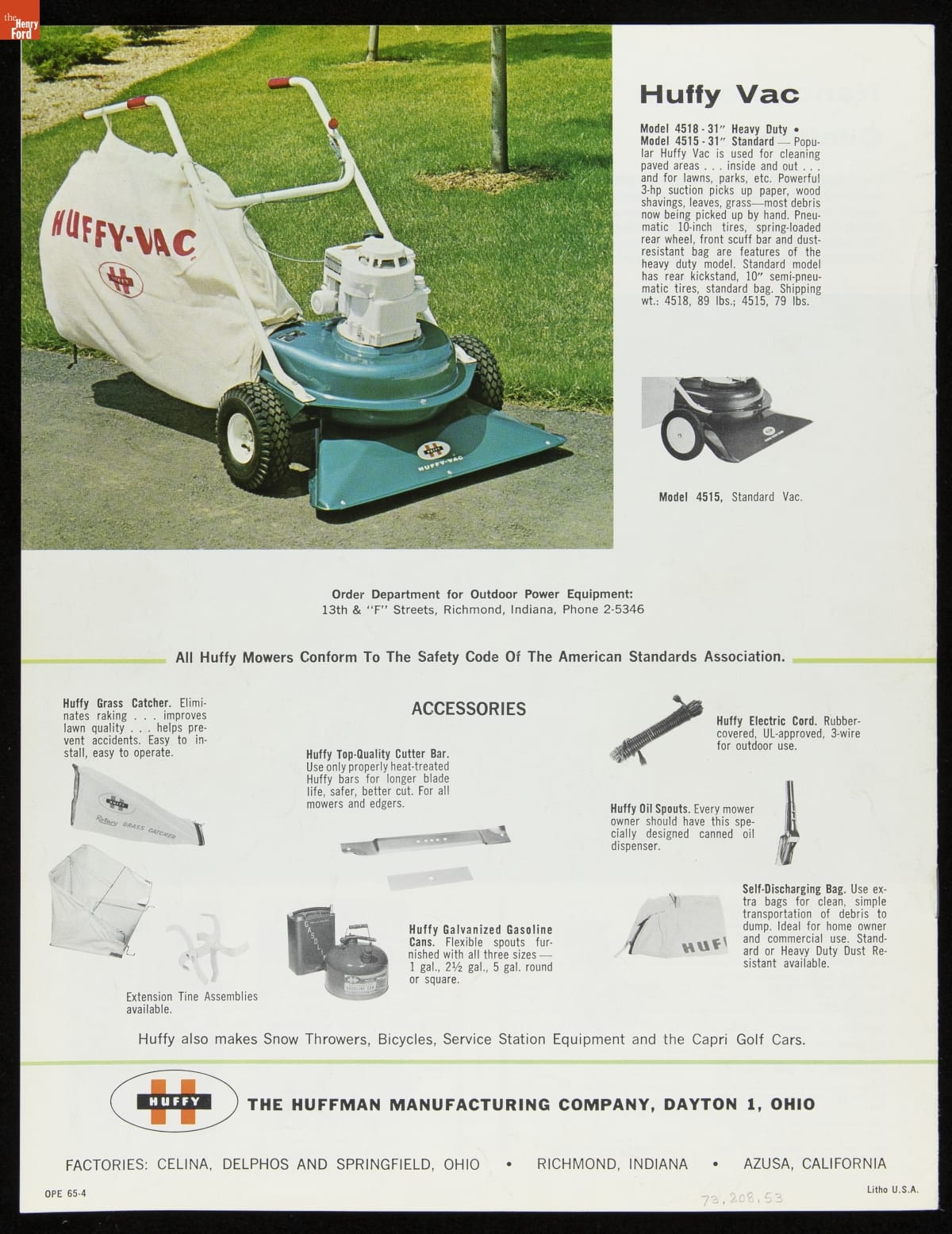 Huffman Manufacturing Company Catalog, "Huffy Outdoor Power Equipment for 1965"