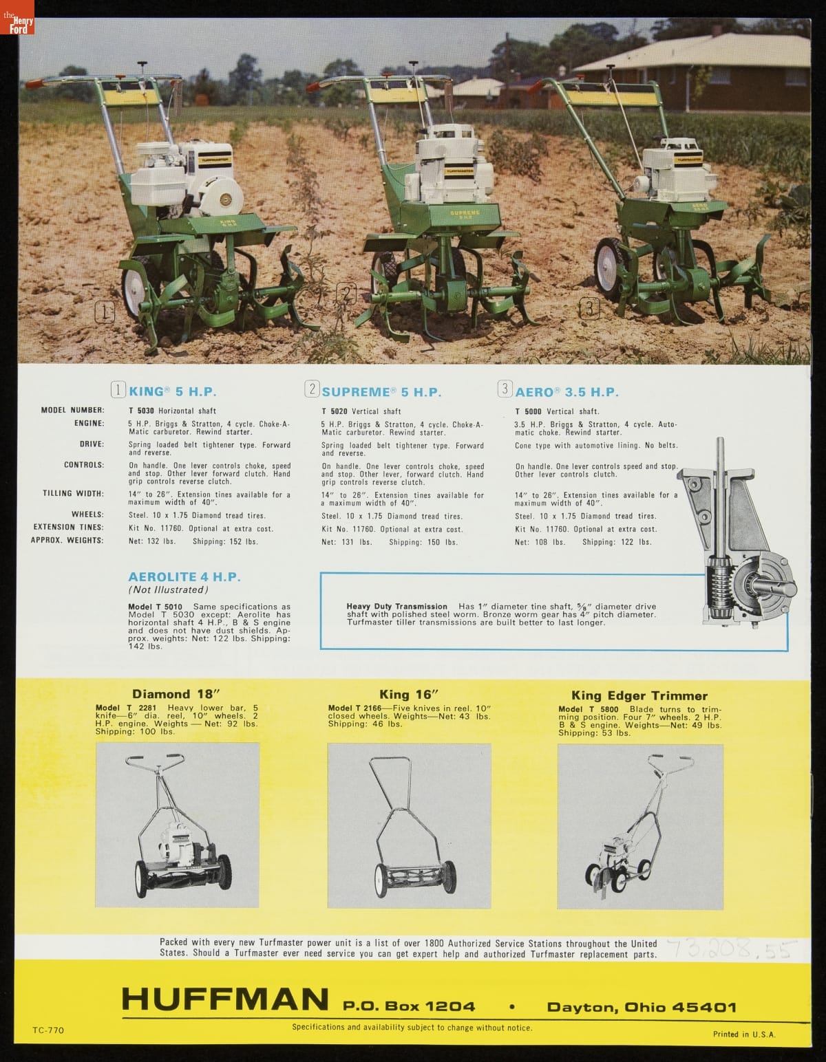 Huffman Manufacturing Company Catalog, "Turfmaster: Buy with Confidence, Own with Pride," 1971