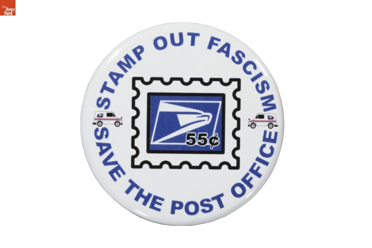 "Stamp Out Fascism, Save the Post Office" Button, 2020