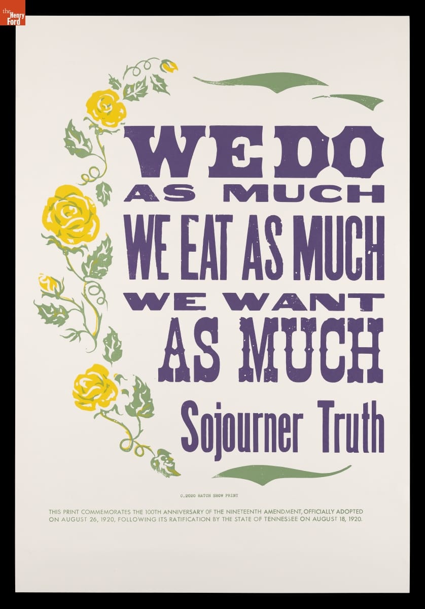 "We Do as Much, We Eat as Much, We Want as Much - Sojourner Truth," Voting Rights Poster, 2020