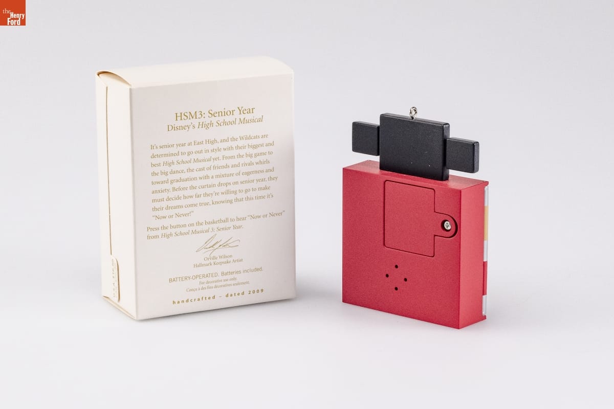 HSM3: Senior Year / Disney's High School Musical / It's senior year at East High, and the Wildcats are / determined to go out in style with their biggest and / best High School Musical yet. From the big game to / the big dance, the cast of friends and rivals whirls / toward graduation with a mixture of eagerness and / anxiety. Before the curtain drops on senior year, they / must decide how far they're willing to go to make / their dream come true, knowing that this time it's / "Now or Never!" / Press the button on the basketball to hear "Now or Never / from High School Muscial 3: Senior Year. / Orville Wilson / Hallmark Keepsake Artist / BATTERY-OPERATED. Batteries included. / For decorative use only. / Concue a des fins decoratives seulement. / handcrafted - dated 2009