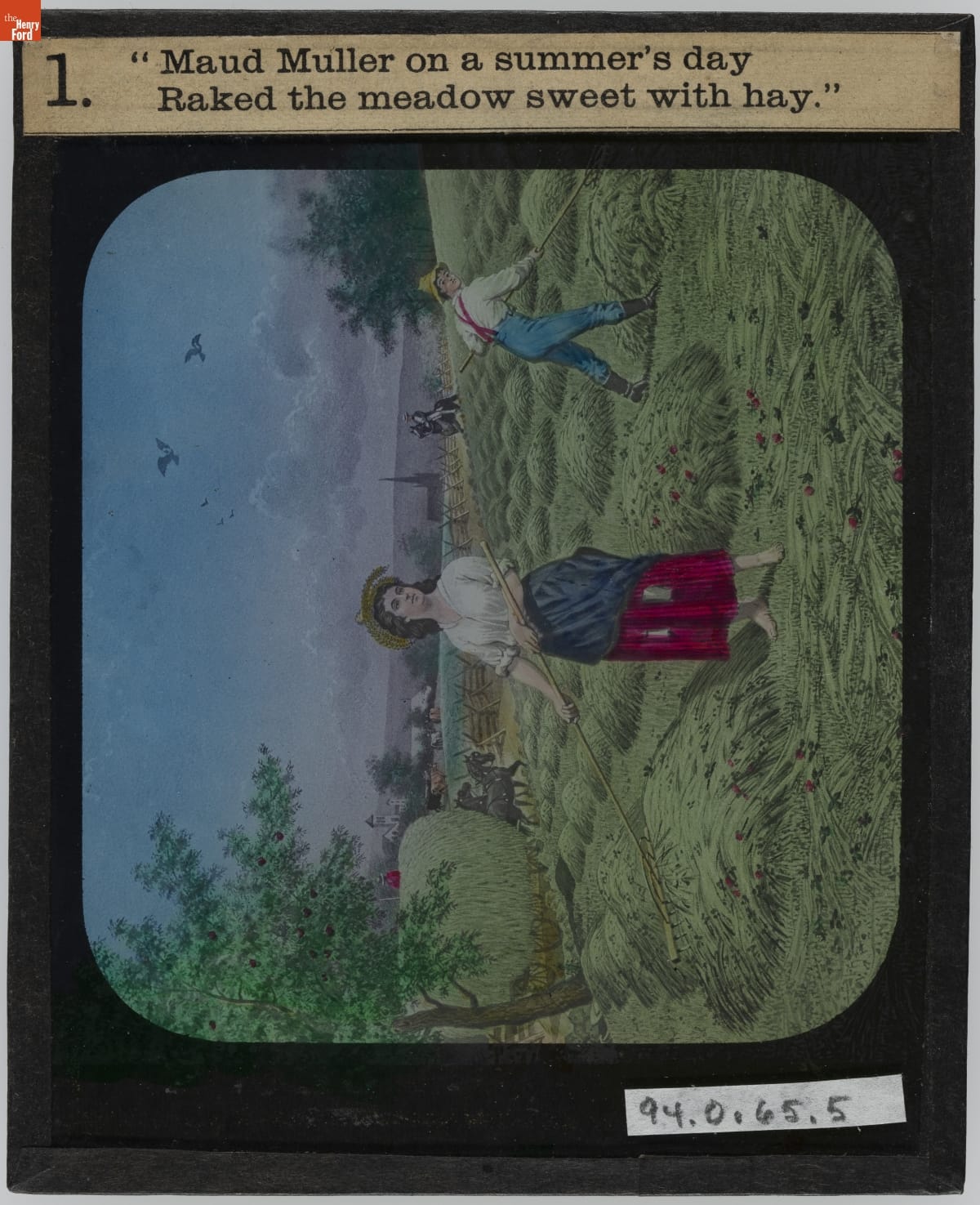 Lantern Slide, Maud Muller Series, "Maud Muller on a Summer's Day Raked the Meadow Sweet with Hay," 1894