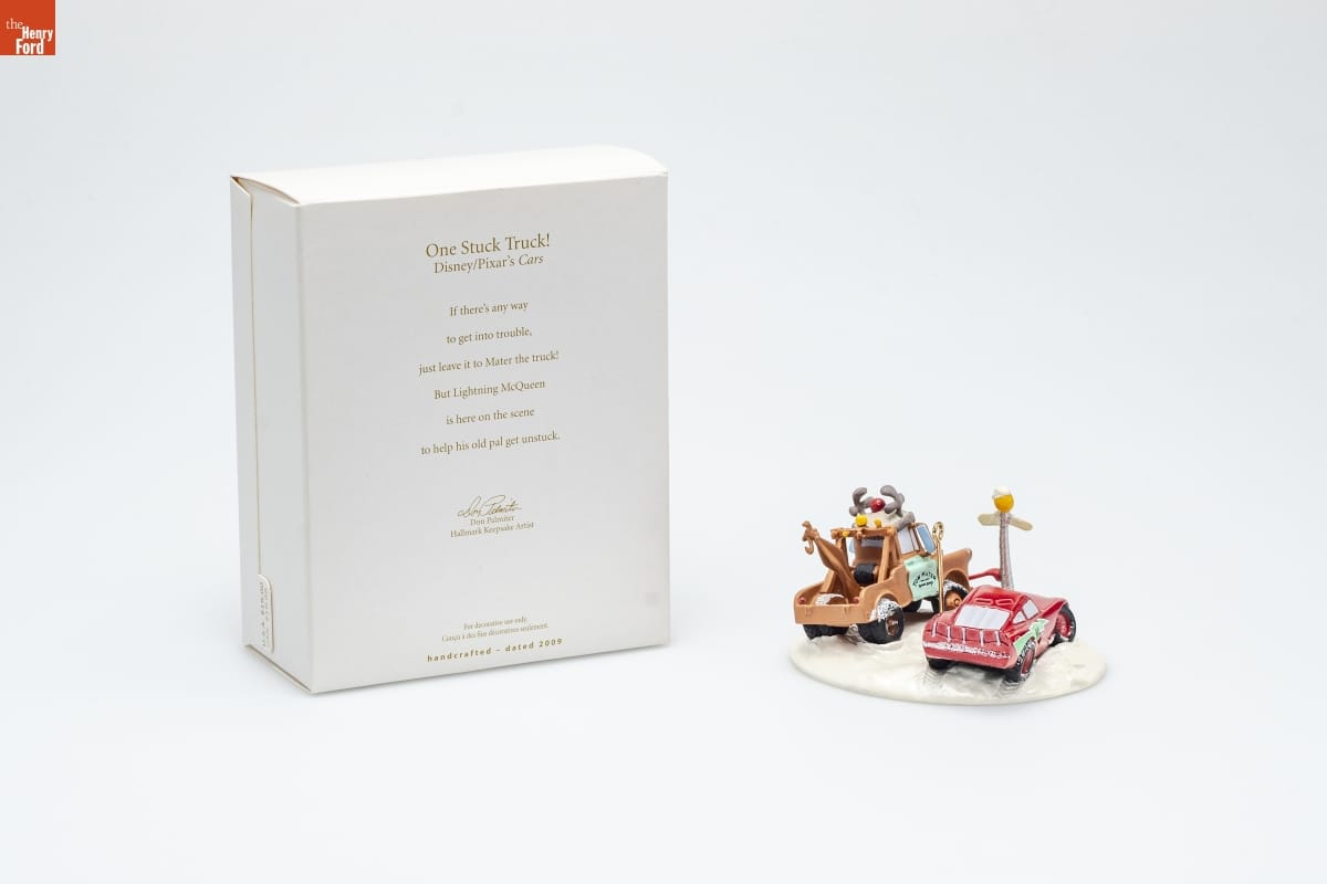 One Stuck Truck! / Disney/Pixar's Cars / If there's any way / to get into trouble, / just leave it to Mater the truck! / But Lightning McQueen / is here on the scene / to help his old pal get unstuck. / Don Palmiter / Hallmark Keepsake Artist / For decorative use only. / Concue a des fins decoratives seulement. / handcrafted - dated 2009