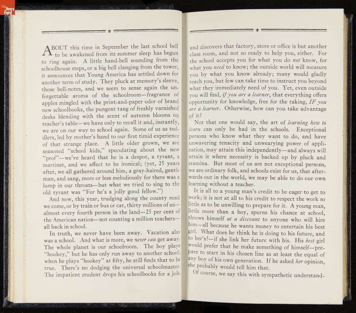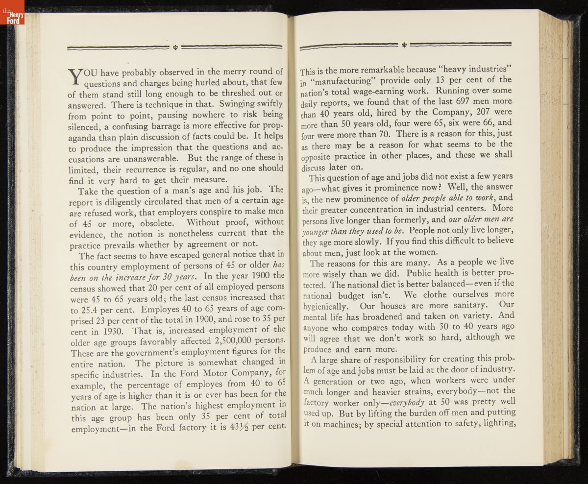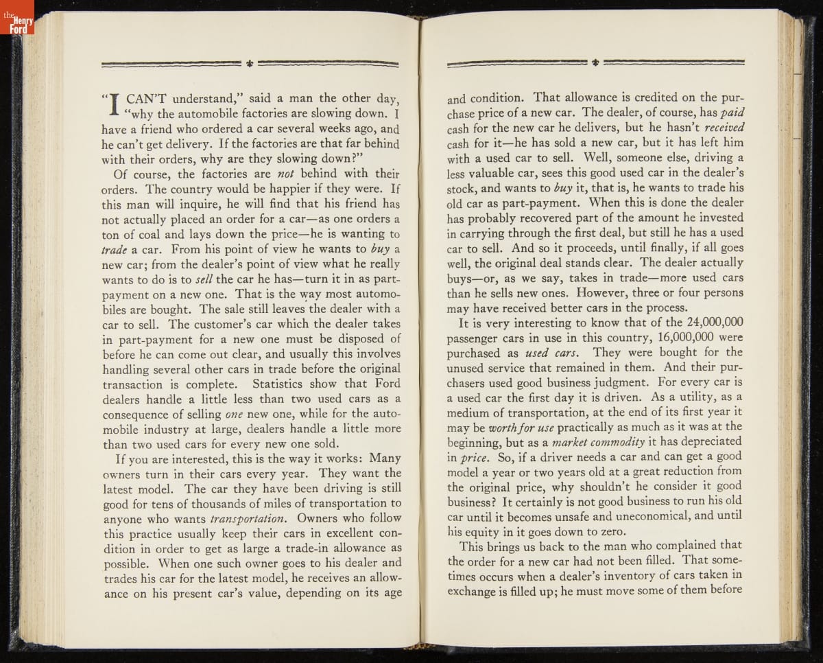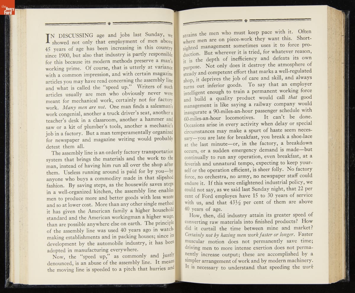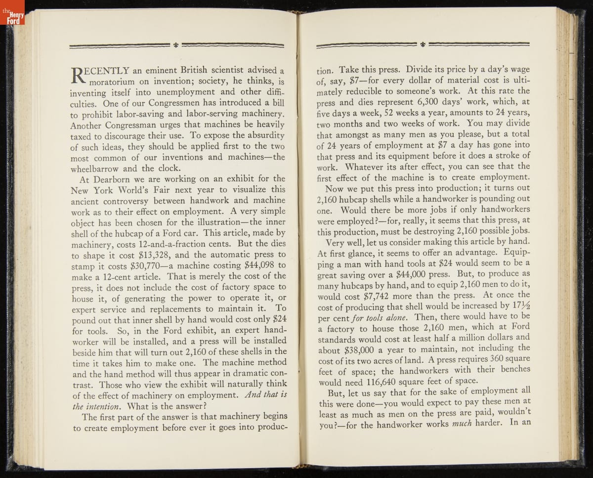 Launched in 1934, the Ford Sunday Evening Hour radio program featured classical music, guest soloists and conductors, and a weekly talk during intermission. Henry Ford asked his friend and advisor William J. Cameron to write and deliver these messages. Cameron, who composed the anti-Semitic articles for The Dearborn Independent, now peddled softer populist views--avoiding extremes and any direct attacks on politicians, ethnic groups, or Wall Street financiers.