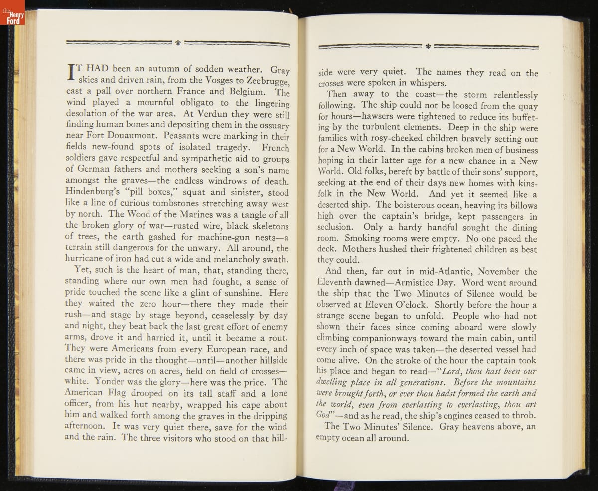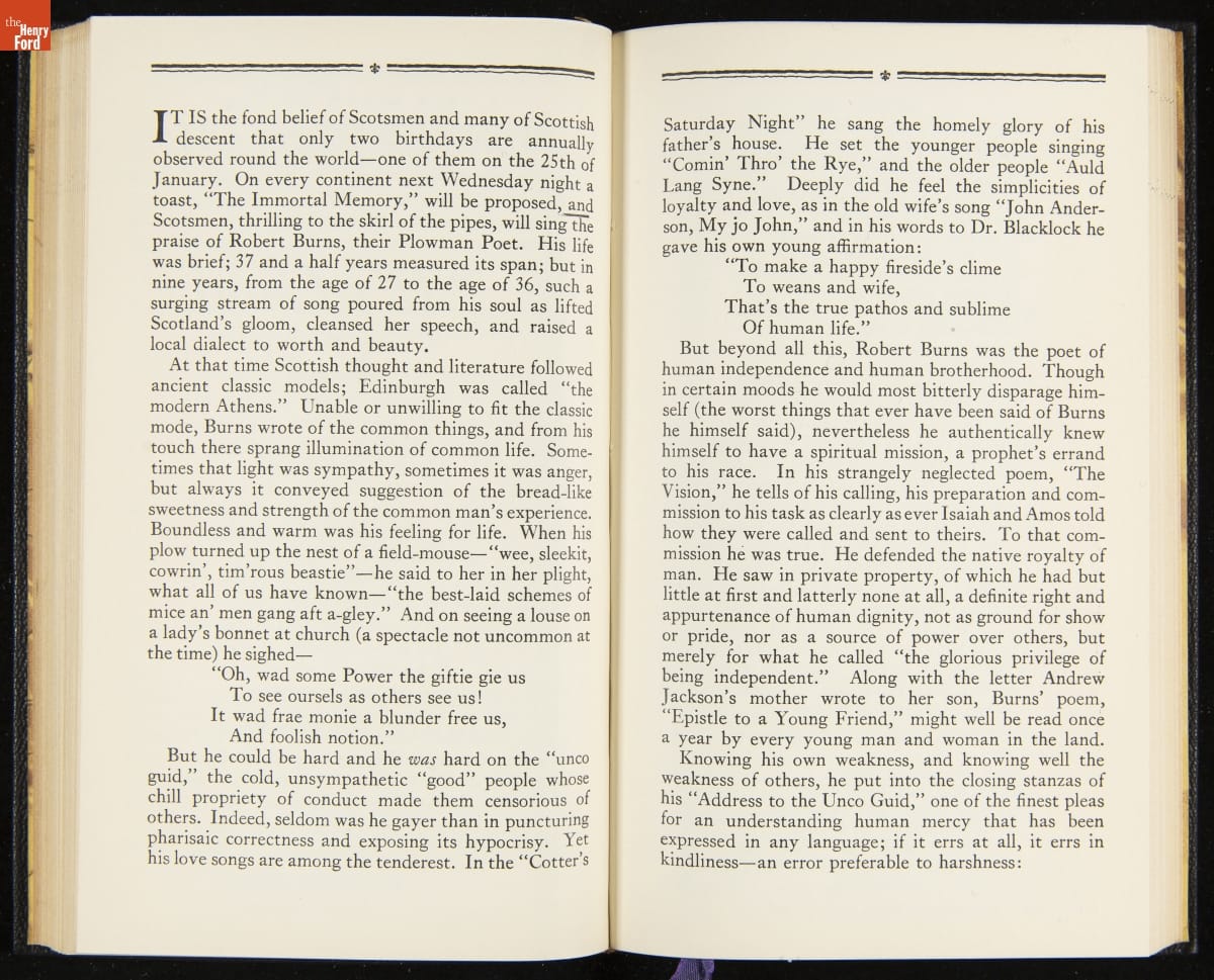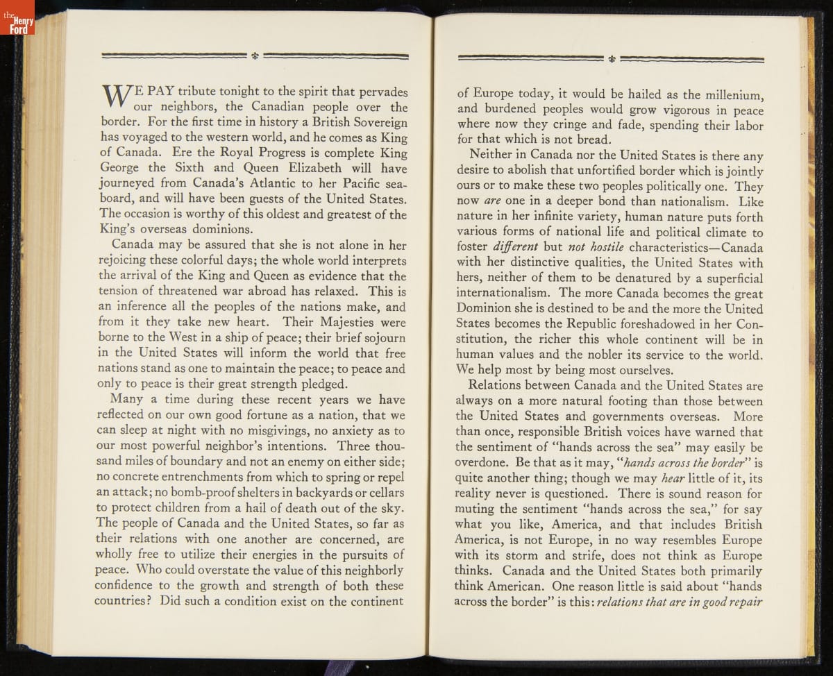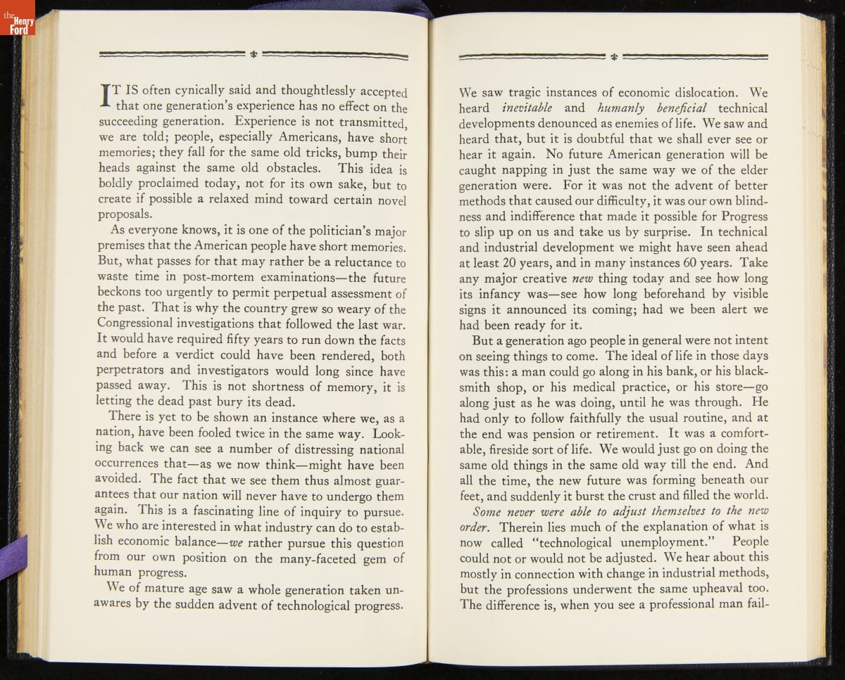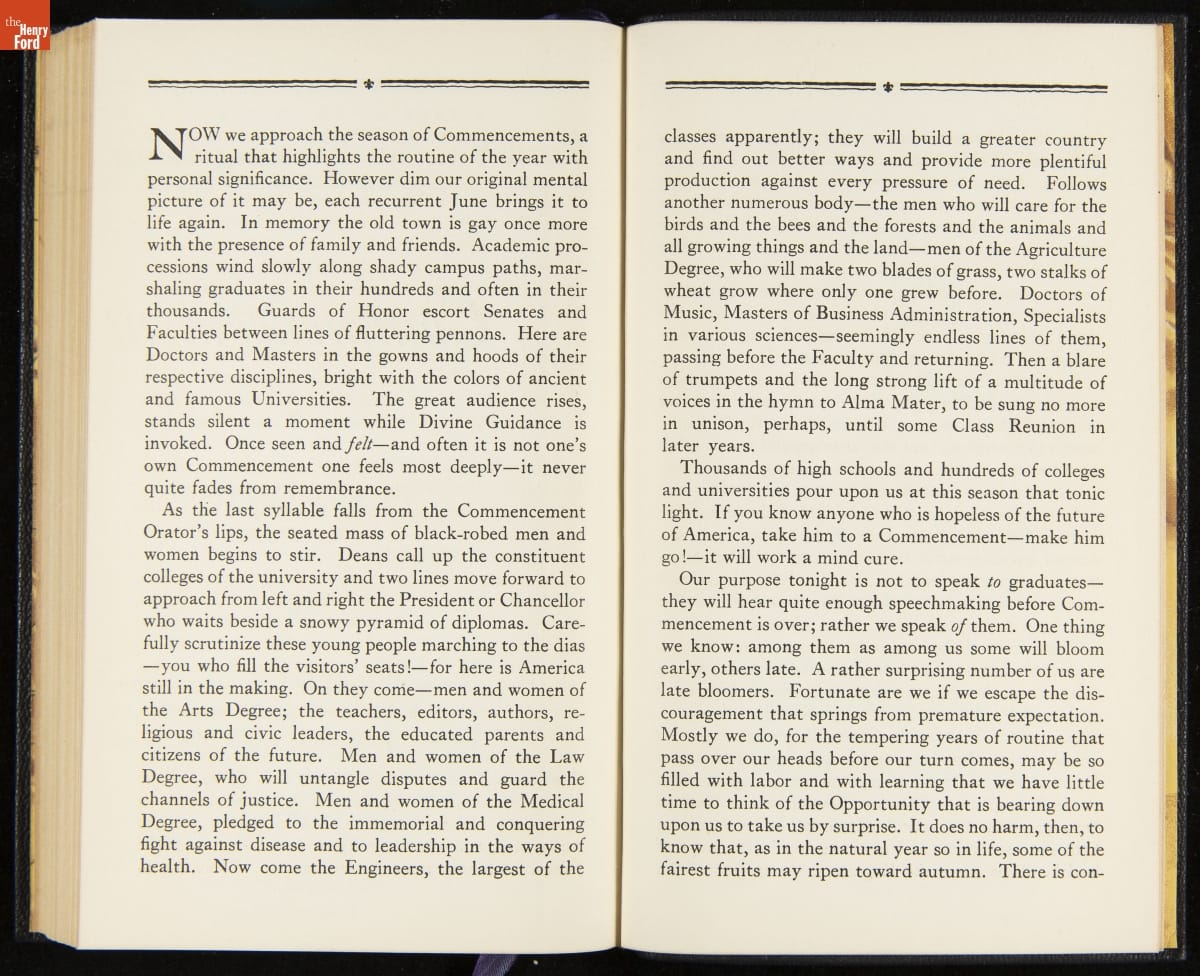 Launched in 1934, the Ford Sunday Evening Hour radio program featured classical music, guest soloists and conductors, and a weekly talk during intermission. Henry Ford asked his friend and advisor William J. Cameron to write and deliver these messages. Cameron, who composed the anti-Semitic articles for The Dearborn Independent, now peddled softer populist views--avoiding extremes and any direct attacks on politicians, ethnic groups, or Wall Street financiers.