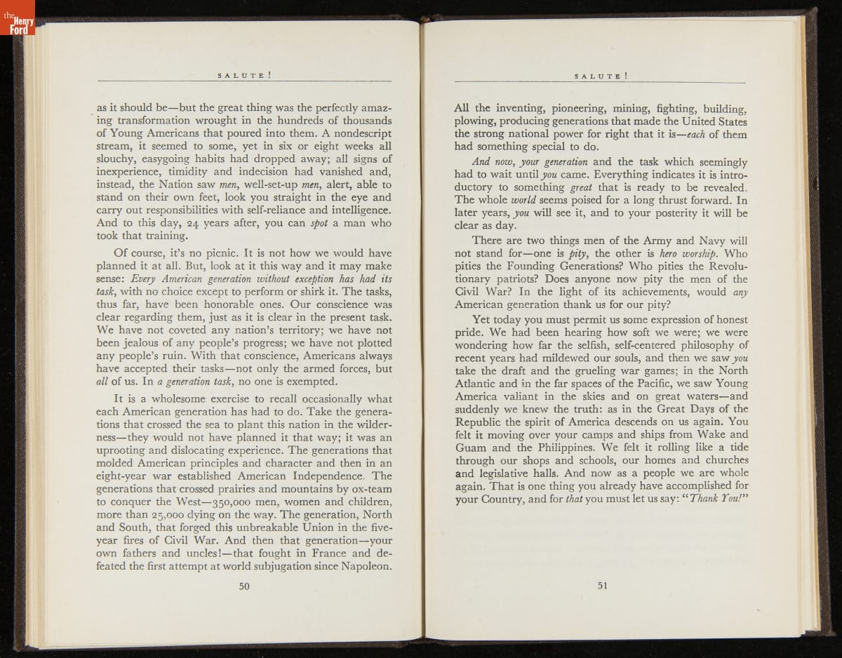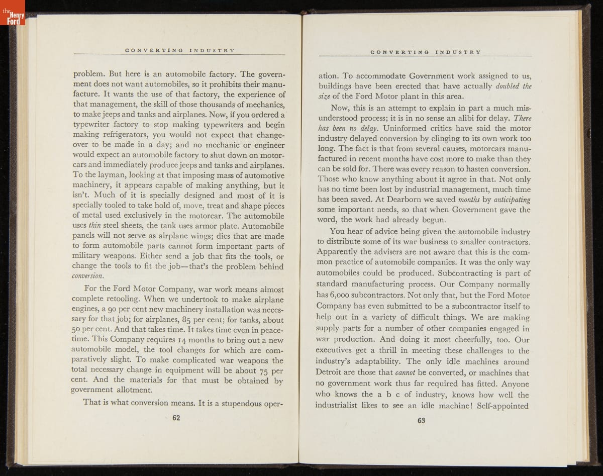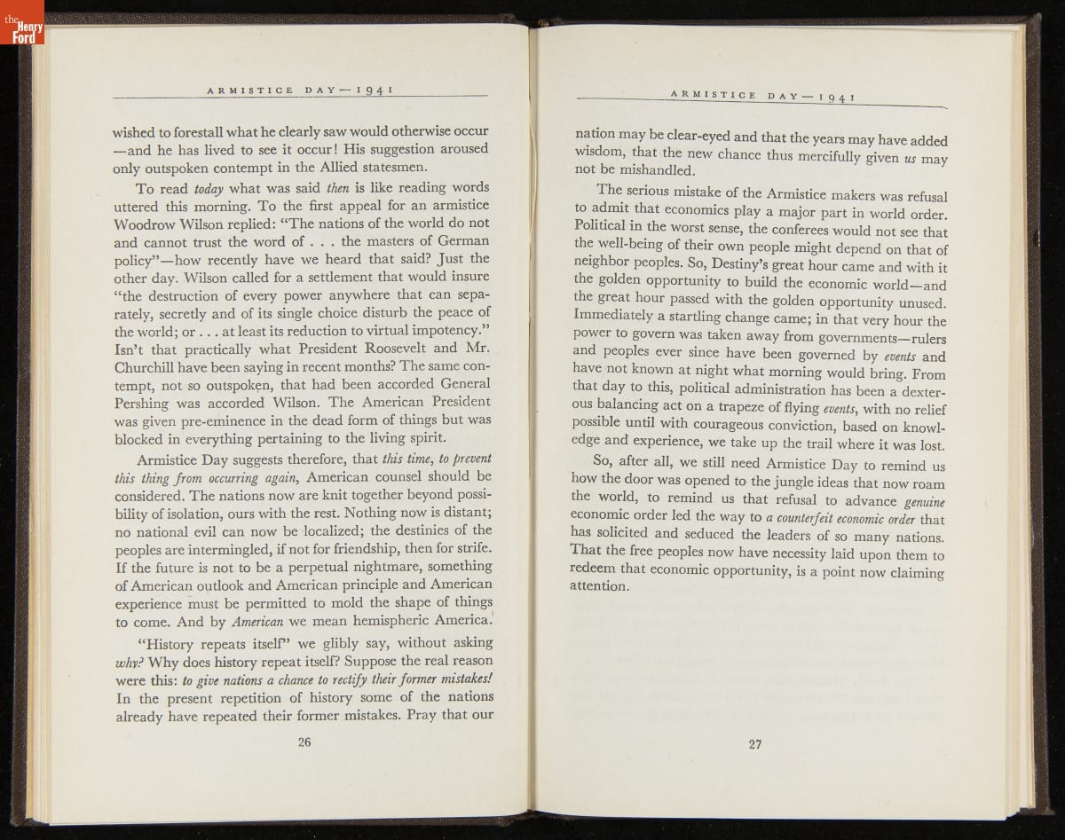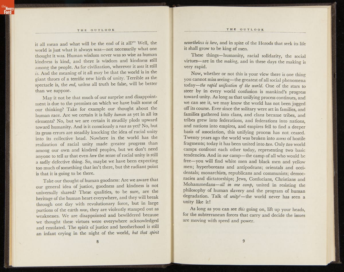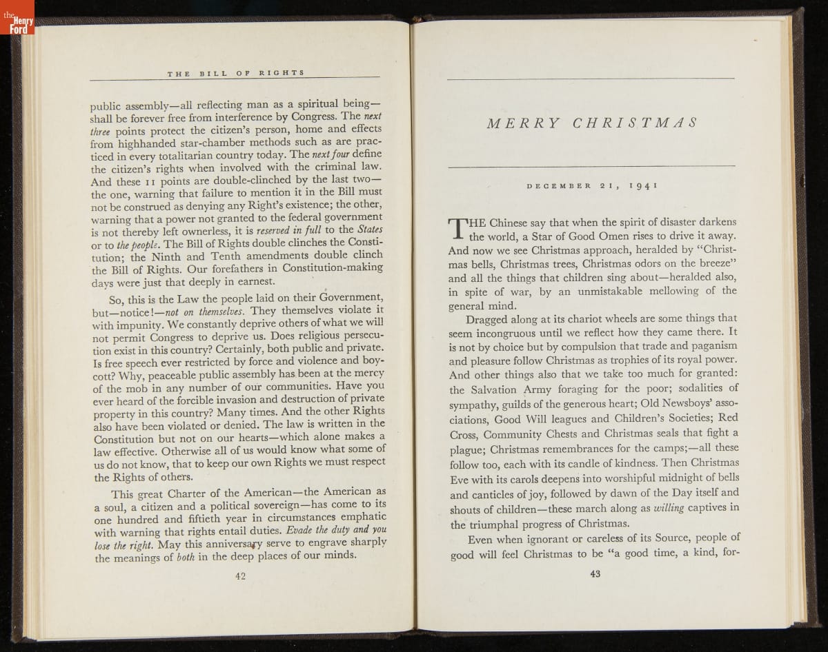 Launched in 1934, the Ford Sunday Evening Hour radio program featured classical music, guest soloists and conductors, and a weekly talk during intermission. Henry Ford asked his friend and advisor William J. Cameron to write and deliver these messages. Cameron, who composed the anti-Semitic articles for The Dearborn Independent, now peddled softer populist views--avoiding extremes and any direct attacks on politicians, ethnic groups, or Wall Street financiers.