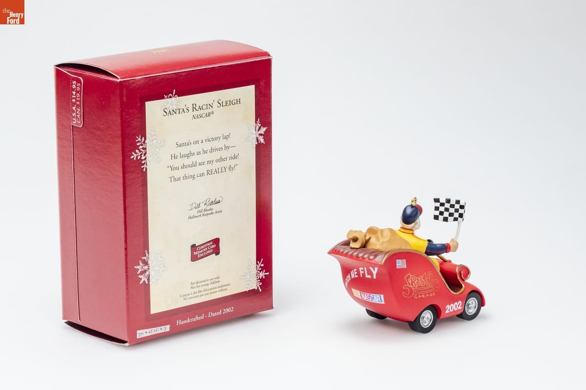 SANTA'S RACIN' SLEIGH / NASCAR [R] / Santa's on a victory lap! / He laughs as he drives by -- / "You should see my other ride! / That thing can REALLY fly!" / Dill Rhodus / Hallmark Keepsake Artist / CHRISTMAS / MEMORY CARD / ENCLOSED / For decorative use only. / Not for young children. / Concue a des fins decoratives seulement. / Ne convient pas aux jeanes enfants. / Handcrafted - Dated 2002