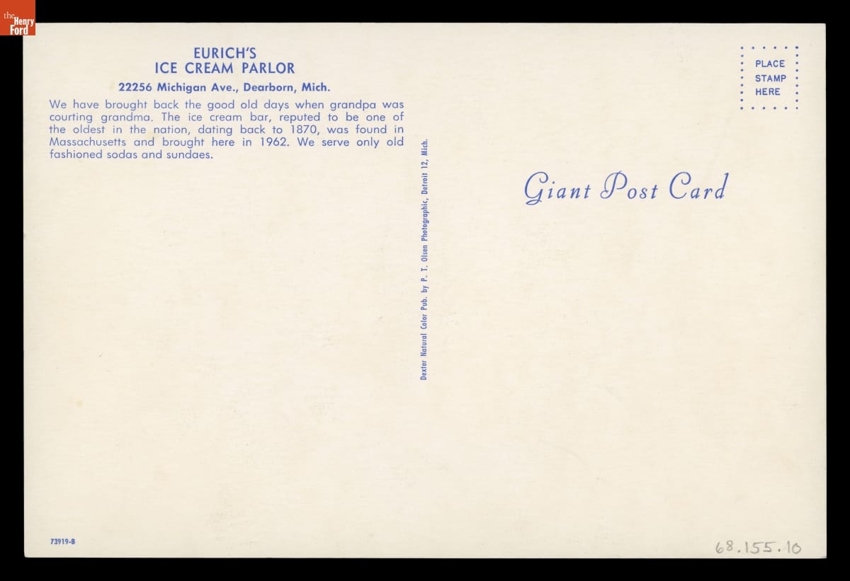 Eurich's Ice Cream Parlor, Dearborn, Michigan, circa 1962