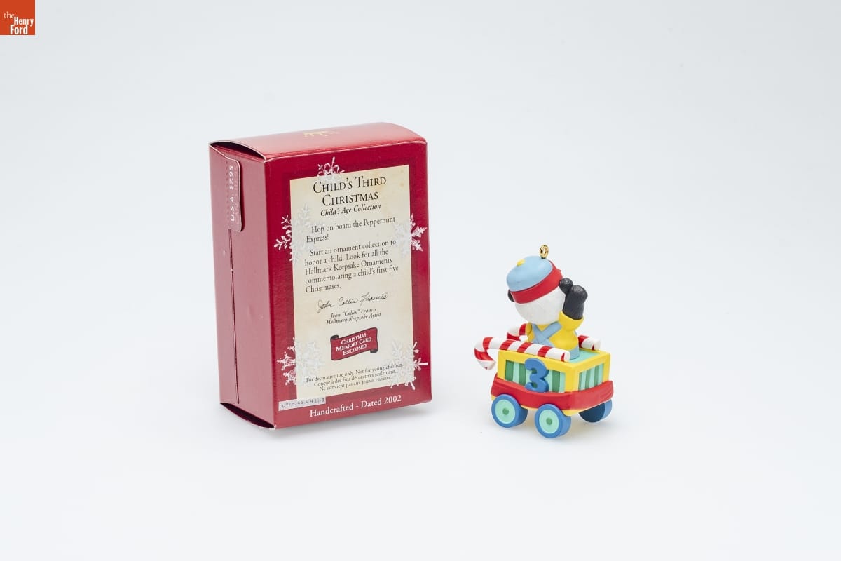 Already known for greeting cards, Hallmark introduced a line of Christmas ornaments in 1973. The company's annual release of an increasing array of ornaments appealed to customers' interest in marking memories and milestones as well as expressing one's personality and unique tastes. Purchasing an ornament like this one would bring back happy family memories of that event year after year.