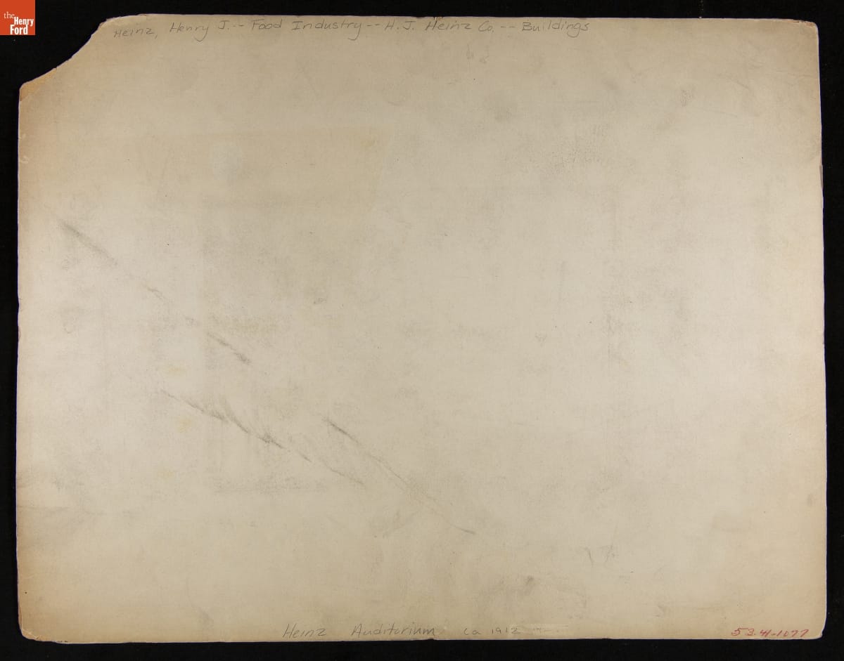The H.J. Heinz Company was at the forefront of employee welfare during the late 19th and early 20th centuries. Exemplary employee amenities such as a gymnasium, swimming pool, auditorium, and self-improvement classes supported a strong company culture. In the auditorium -- believed to be the first in the country built exclusively for employees -- workers attended concerts, dances, and stage productions.