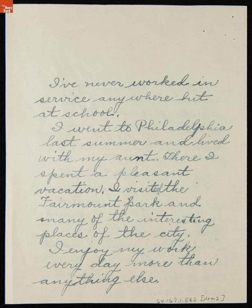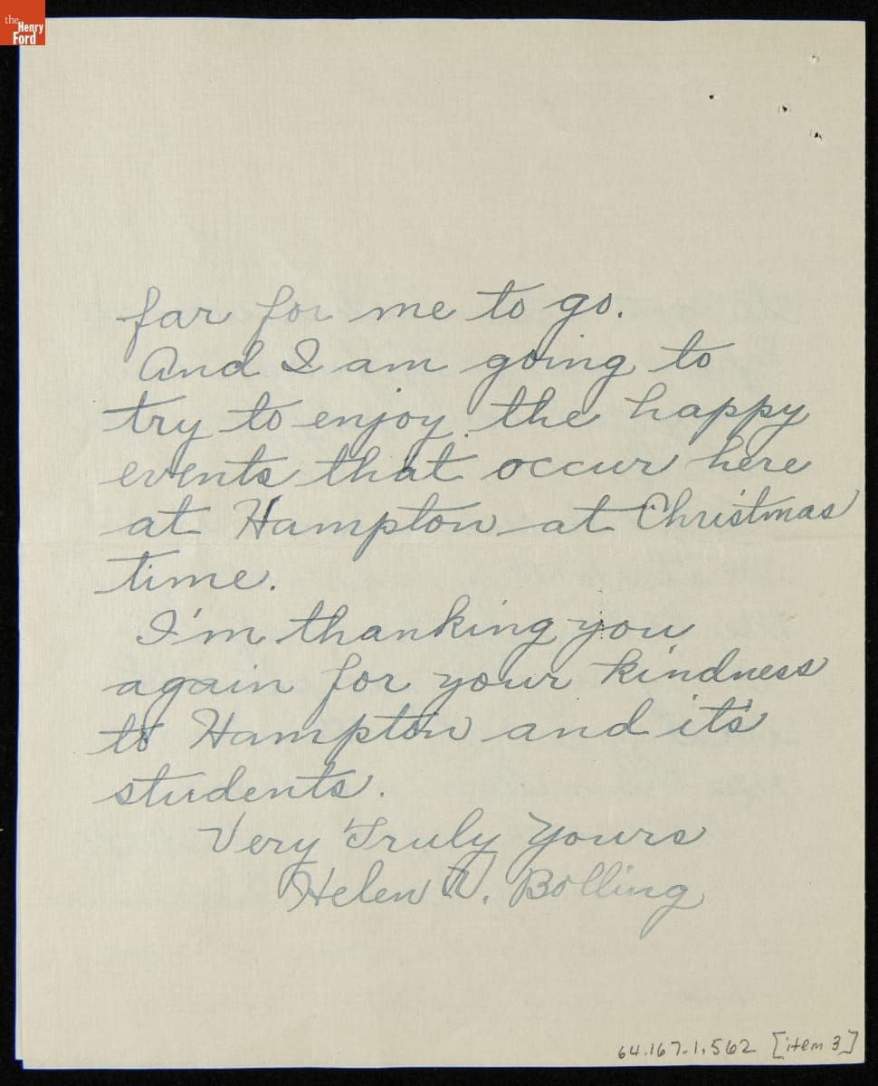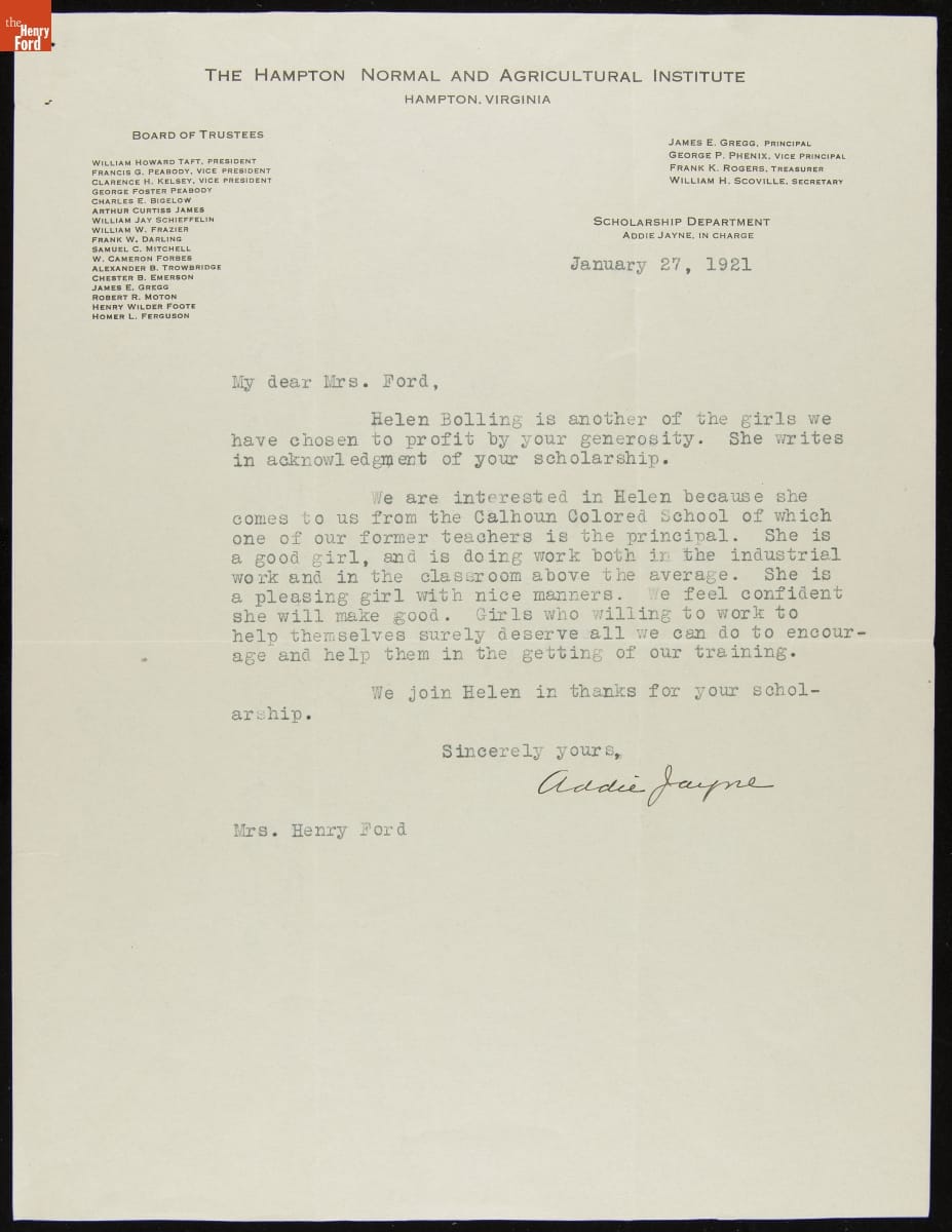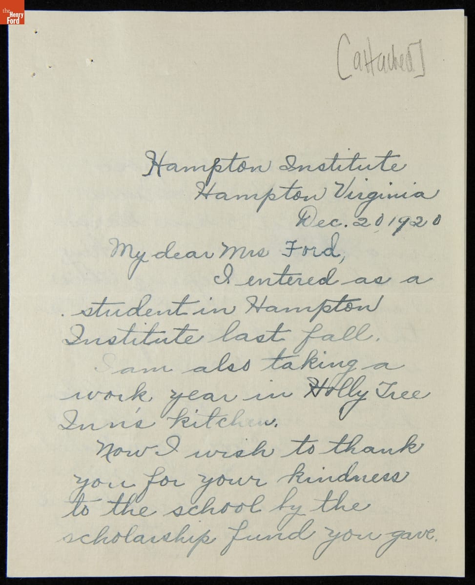 Letters to Clara Ford from a Hampton Institute Student and Her Scholarship Department Leader, 1920-1921