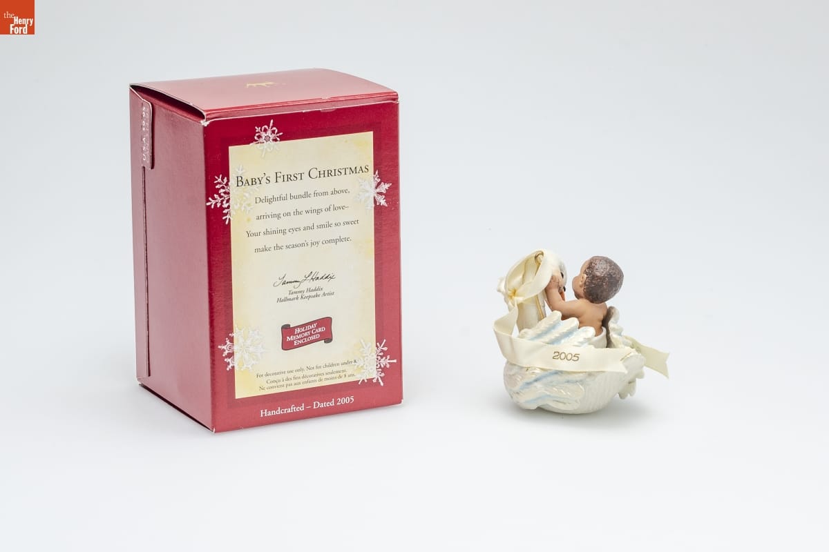 Already known for greeting cards, Hallmark introduced a line of Christmas ornaments in 1973. The company's annual release of an increasing array of ornaments appealed to customers' interest in marking memories and milestones as well as expressing one's personality and unique tastes. Purchasing an ornament like this one would bring back happy family memories of that event year after year.