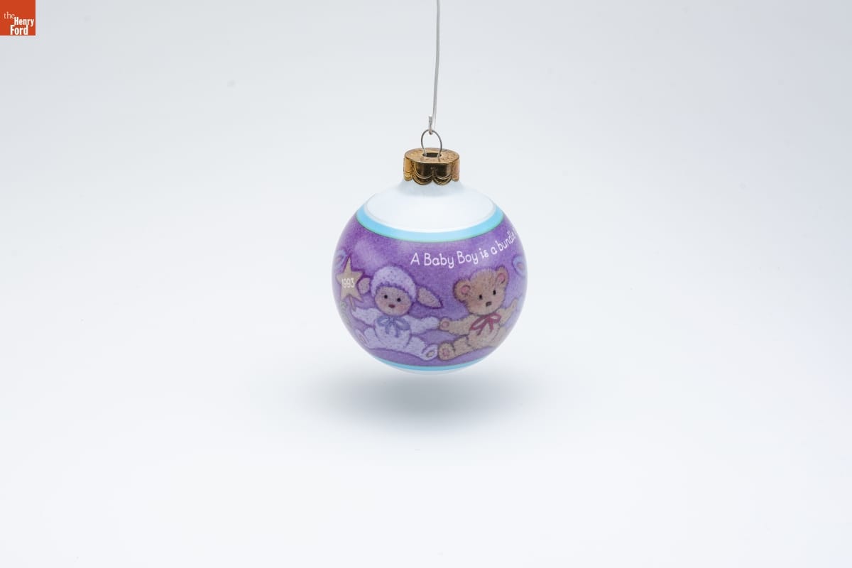 Already known for greeting cards, Hallmark introduced a line of Christmas ornaments in 1973. The company's annual release of an increasing array of ornaments appealed to customers' interest in marking memories and milestones as well as expressing one's personality and unique tastes. Purchasing an ornament like this one would bring back happy family memories of that event year after year.