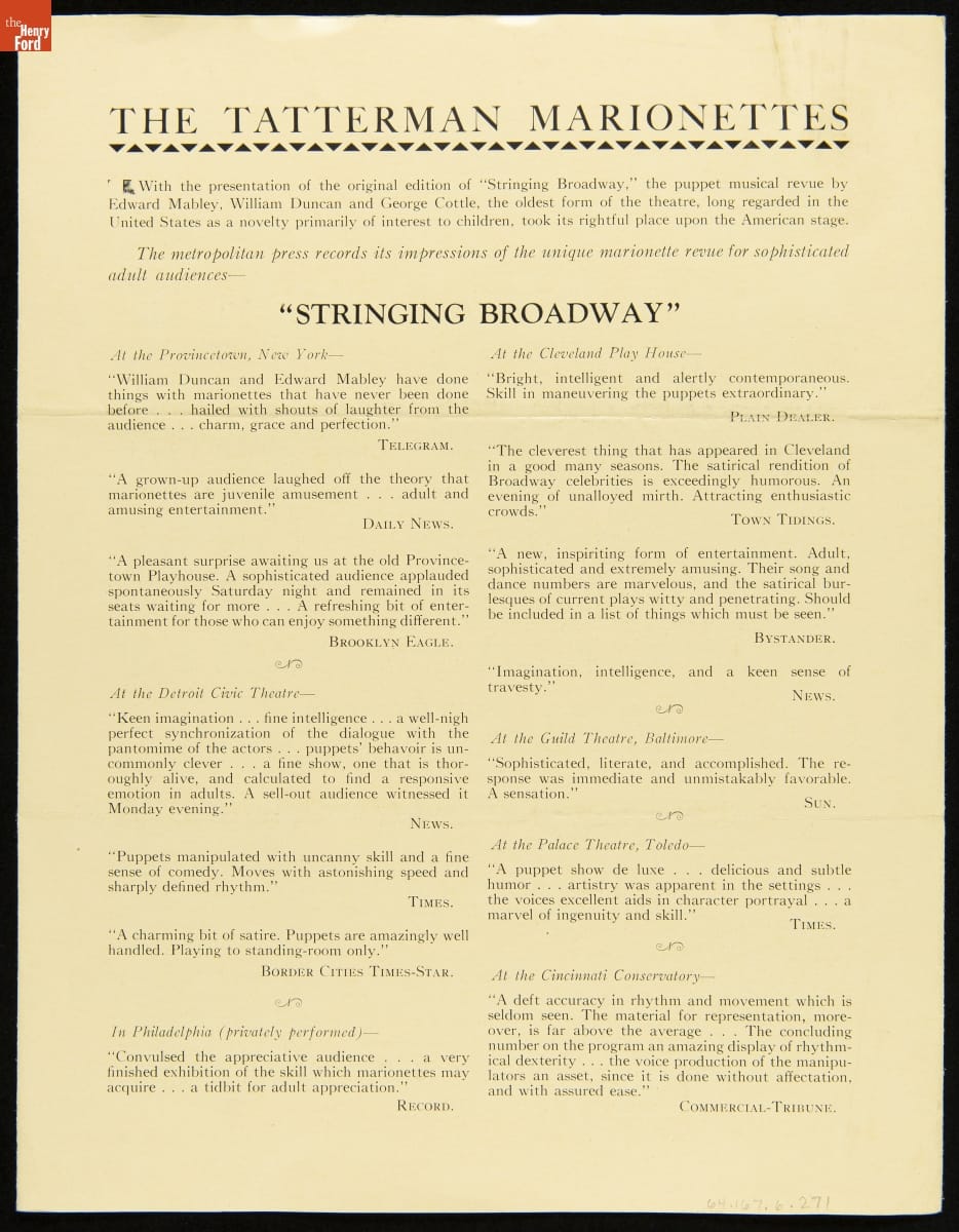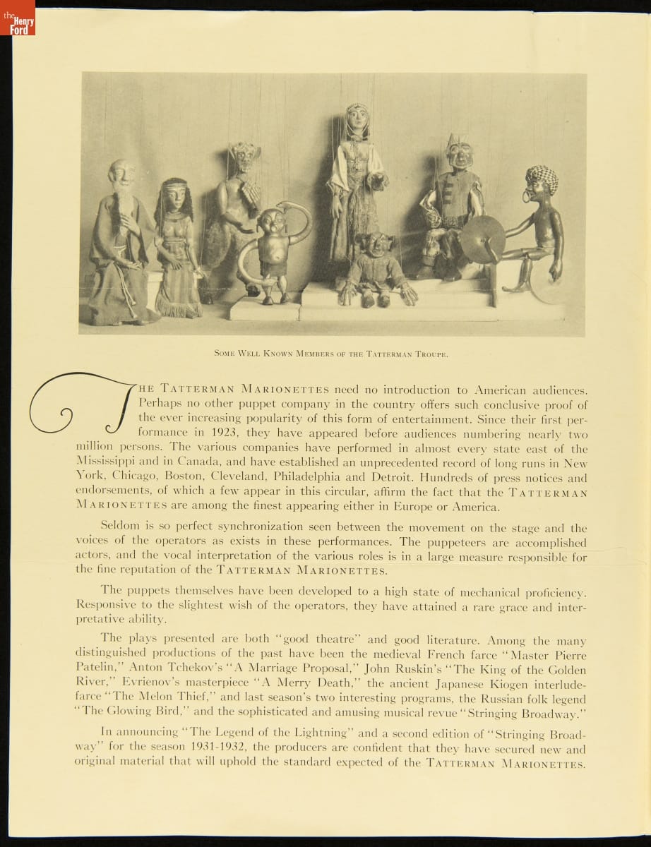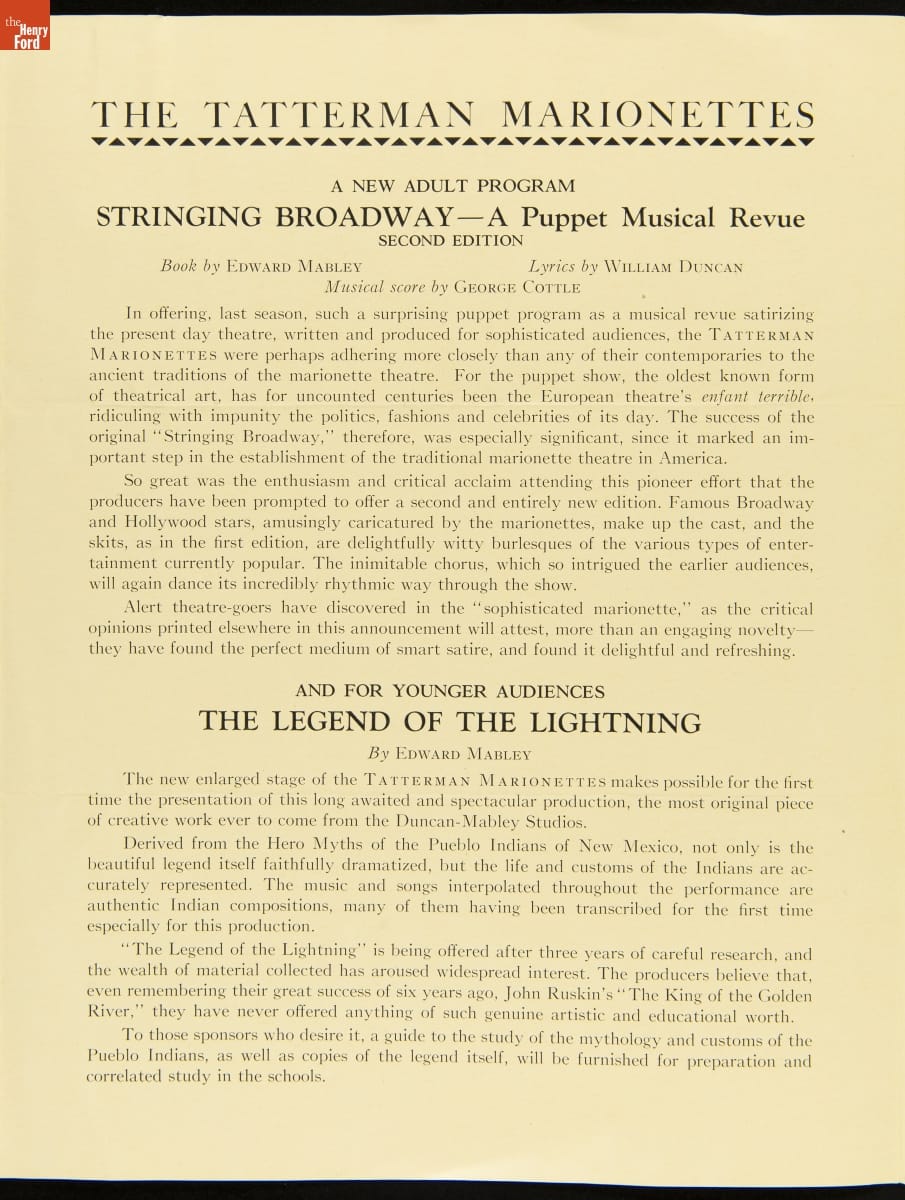 A Modern Adult Program and a New Children's Program for The Tatterman Marionettes, 1931-1932
