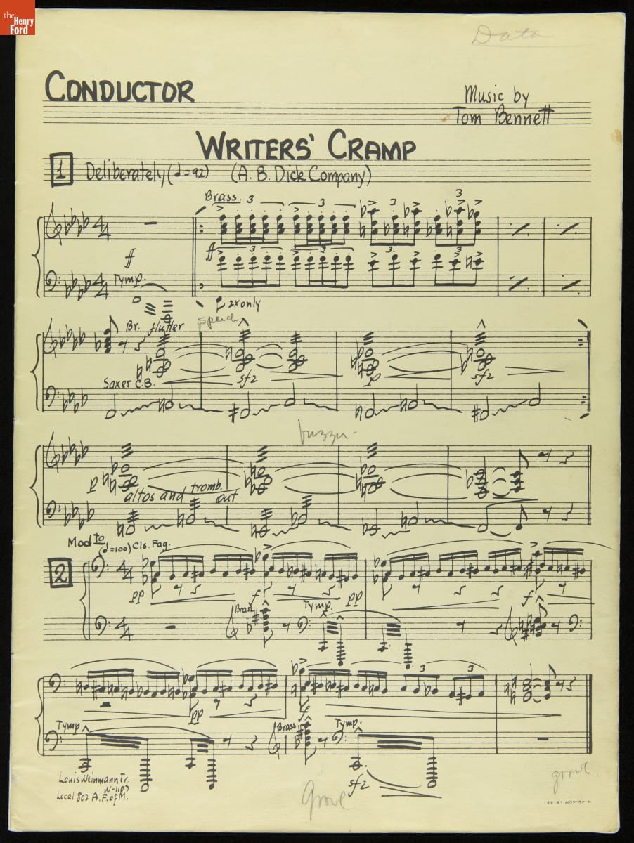 Conductor's Score from "Writers' Cramp" Marionette Show, A.B. Dick Company Exhibit, New York World's Fair, 1939