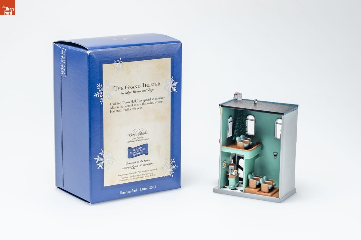 THE GRAND THEATER / Nostalgic Houses and Shops / Look for "Town Hall," the special anniversary / edition that complements this series, at your / Hallmark retailer this year. / Don Palmiter / Hallmark Keepsake Artist / HOLIDAY / MEMORY CARD / ENCLOSED / Twentieth in the Series. / Look for 20 on this ornament. / For decorative use only. Not for children under 8. / Concue a des fins decoratives seulement. / Ne convient pas aux enfants de moins de 8 ans. / Handcrafted - Dated 2003