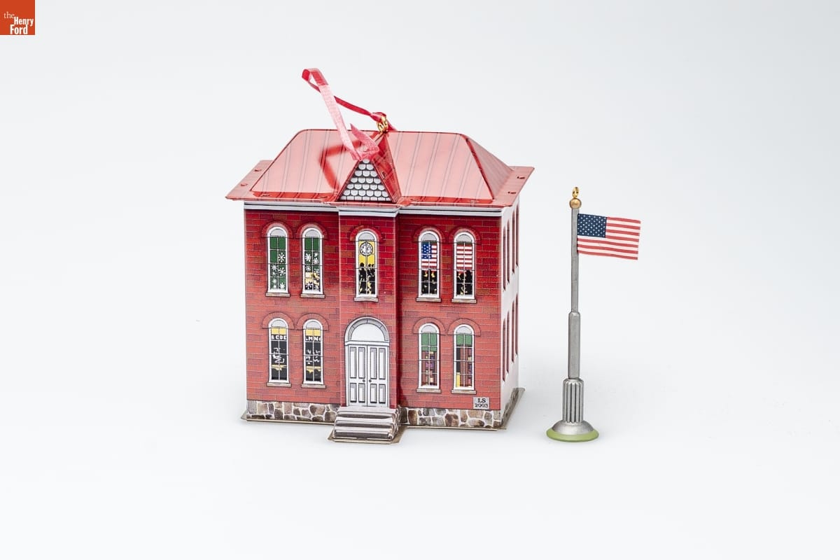 on front of schoolhouse ornament: