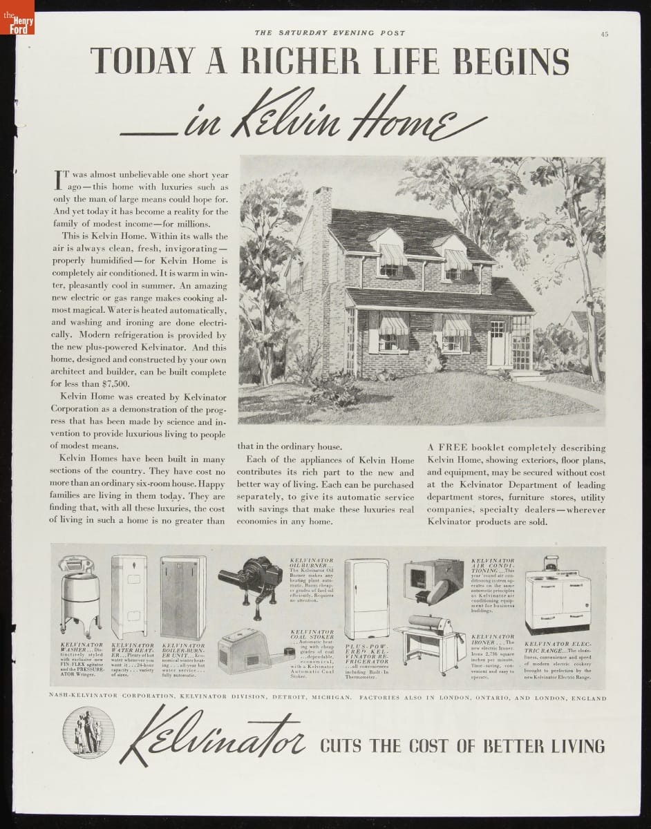 Nash-Kelvinator Corporation Advertisement, "Today, a Richer Life Begins - In Kelvin Home," 1937