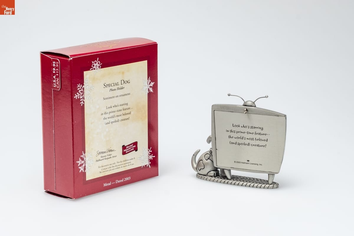 SPECIAL DOG / Photo Holder / Sentiment on ornament: / Look who's starring / in this prime-time feature... / the world's most beloved / (and spoiled) creature! / Sharon Visker / Hallmark Keepsake Artist / HOLIDAY / MEMORY CARD / ENCLOSED / For decorative use only. Not for children under 8. / Concue a des fins decoratives seulement. / Ne convient pas aux enfants de moins de 8 ans. / Metal - Dated 2003