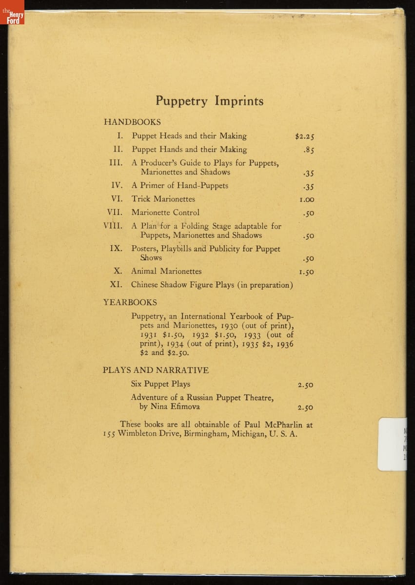 Puppets in America, 1739 to Today: With an Account of the First American Puppetry Conference, 1936