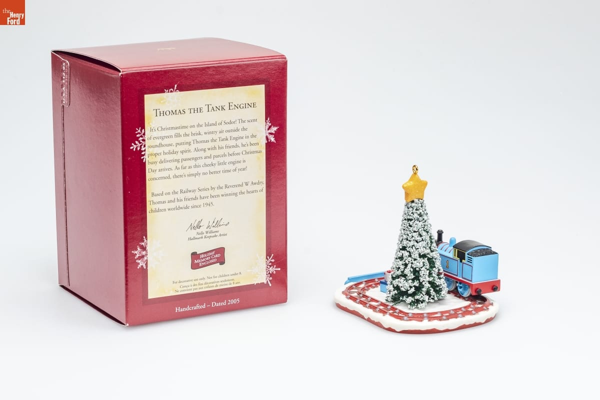 Thomas the Tank Engine & Friends TM / A BRITT ALLCROFT COMPANY PRODUCTION / Based on The Railway Series by the Reverend W Audry / (C) 2005 Gullane (Thomas) Limited. A HIT Entertainment / Company. Thomas the Tank Engine & Friends and Thomas & / Friends are trademarks of Gulhane Entertainment Inc. / Thomas the Tank Engine & Design is Reg. U.S. Pat. & Tm. / Off. / Mfd. for Hallmark Cards, Inc., Kansas City, MO 64141 / Made in China QXI6235
